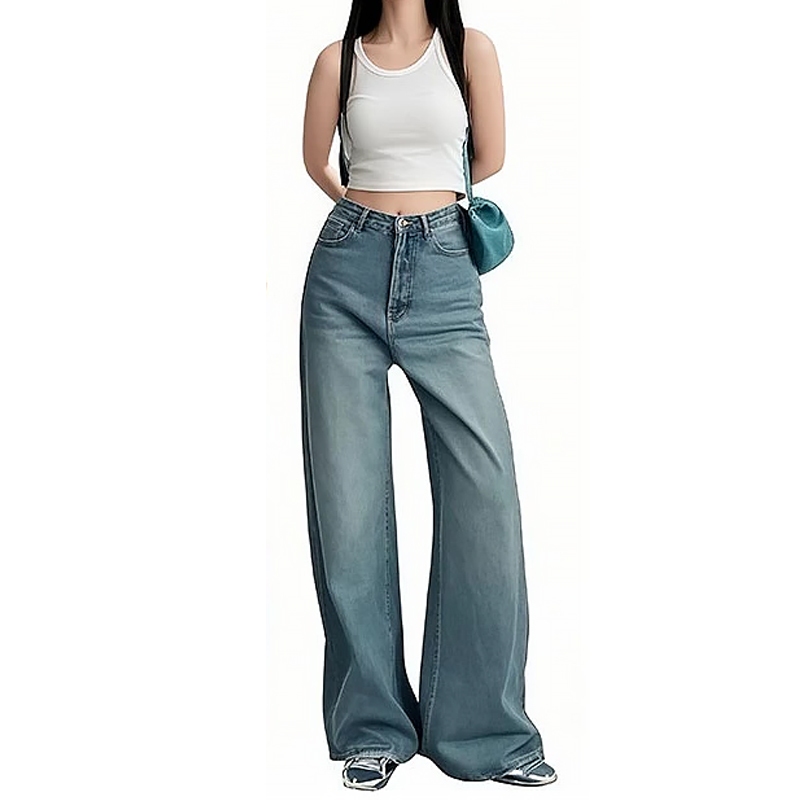 KEYGIRL CELANA JEANS TERBARU KOREA BIRU RETRO BAGGY JEANS PINGGANG TINGGI BAGGY PREMIUM DENIM