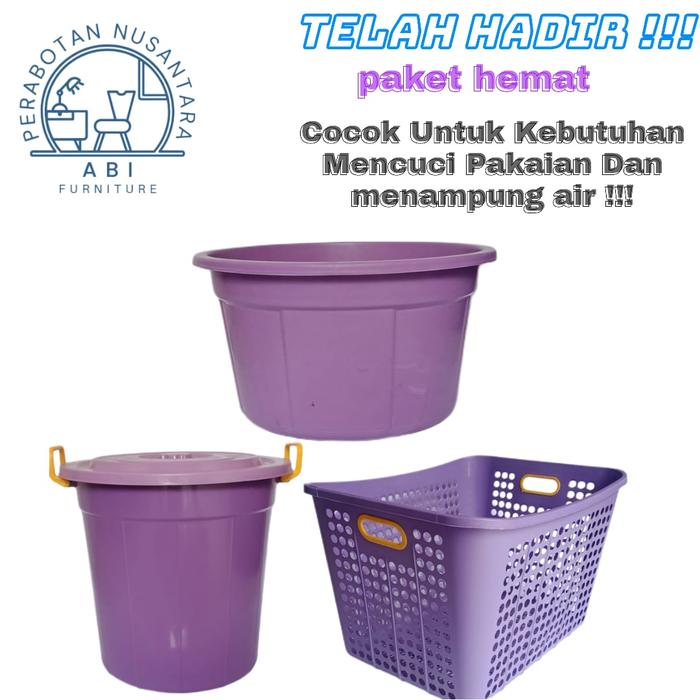 LEBIH HEMAT 3 ITEM BAK AIR JUMBO 45 LITER + KERANJANG PAKAIAN SERBAGUNA + EMBER AIR 30 LITER WARNA PLASTIK - PAKET HEMAT 3 ITEM UNGU
