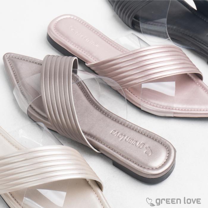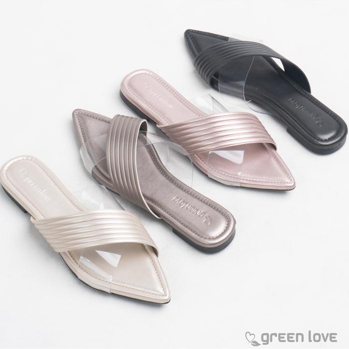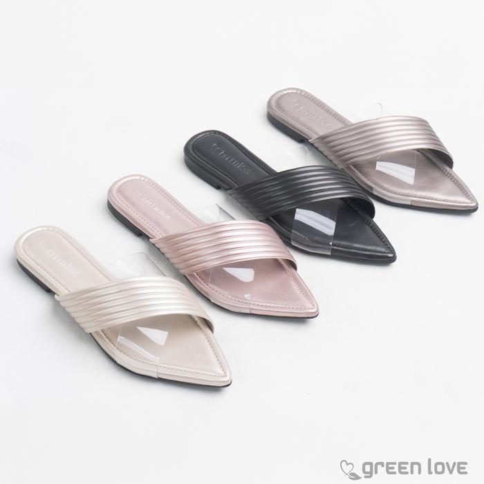 GREEN LOVE SANDAL FLAT WANITA STEVANI - HITAM, 37