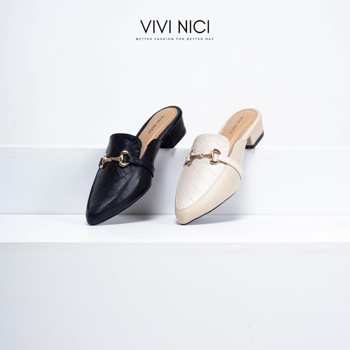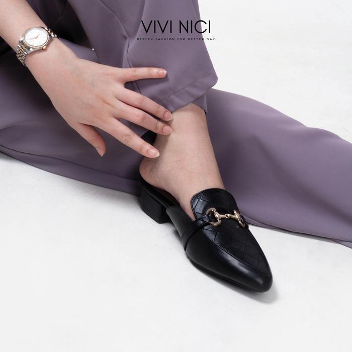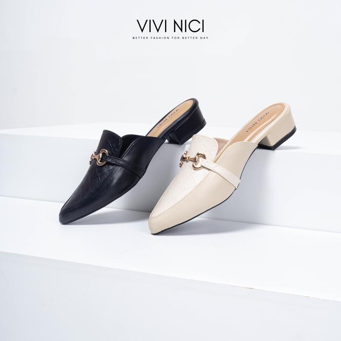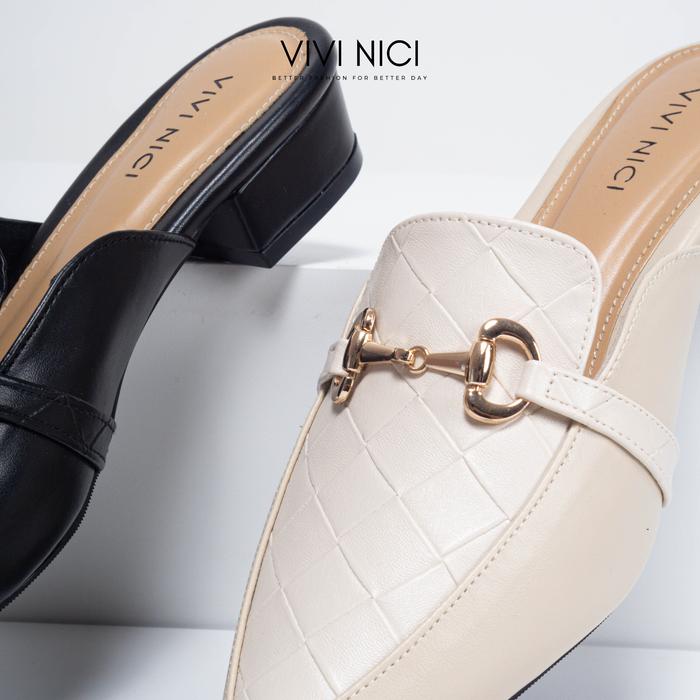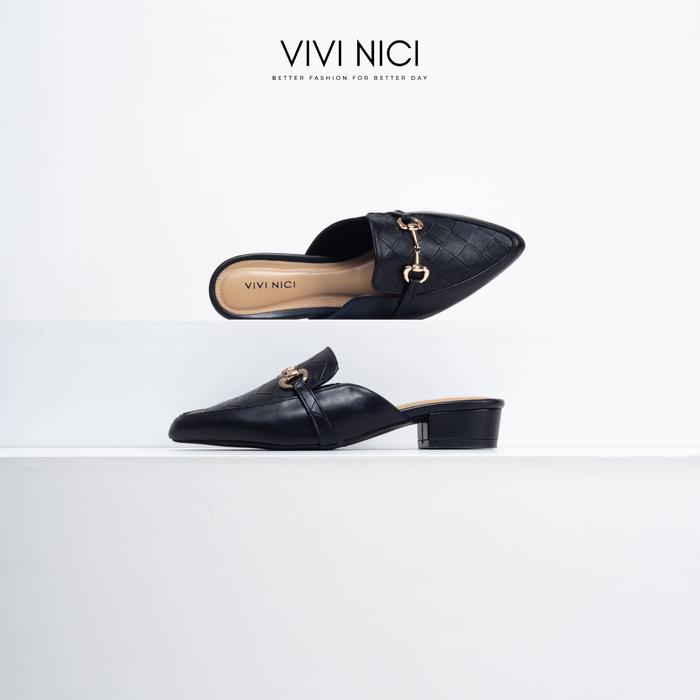 VIVI NICI - MARIE SANDAL MULES HAK 3 CM BLACK SHOES SANDAL WANITA SENDAL WANITA MULES WANITA - BLACK SOLID, 36