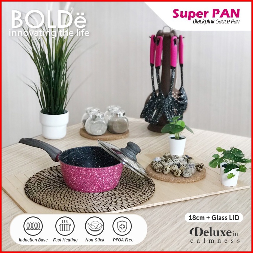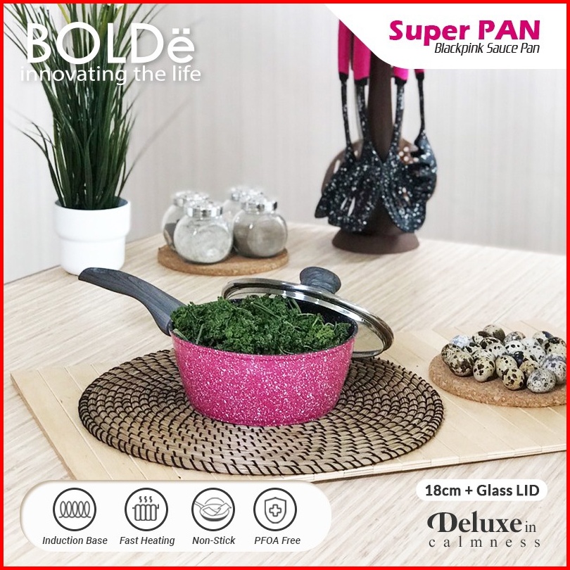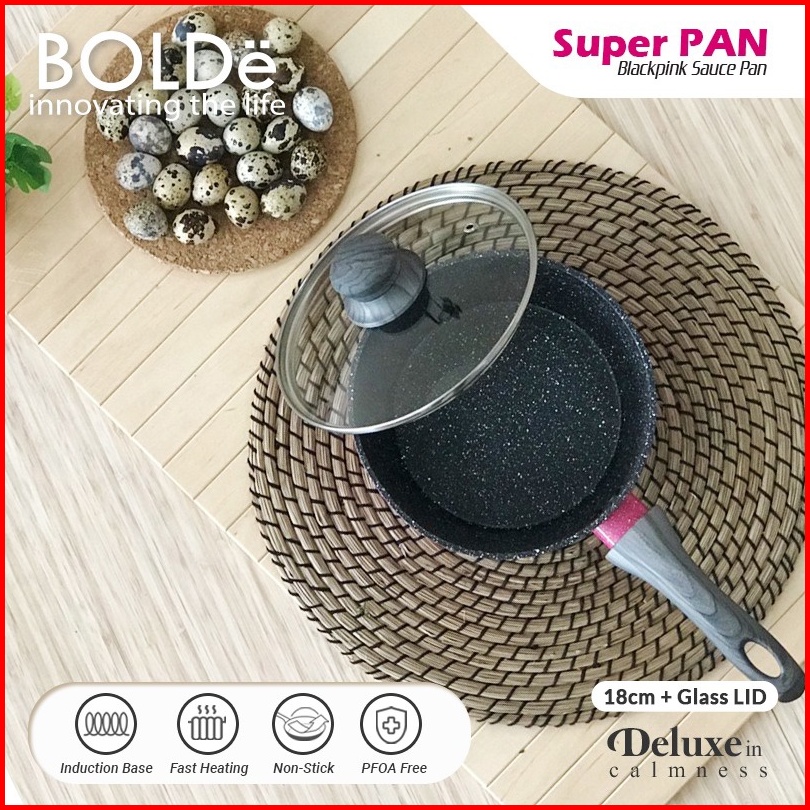 Bolde Panci Tutup Kaca Sauce Pan Glass Lid Black Pink 18 Cm