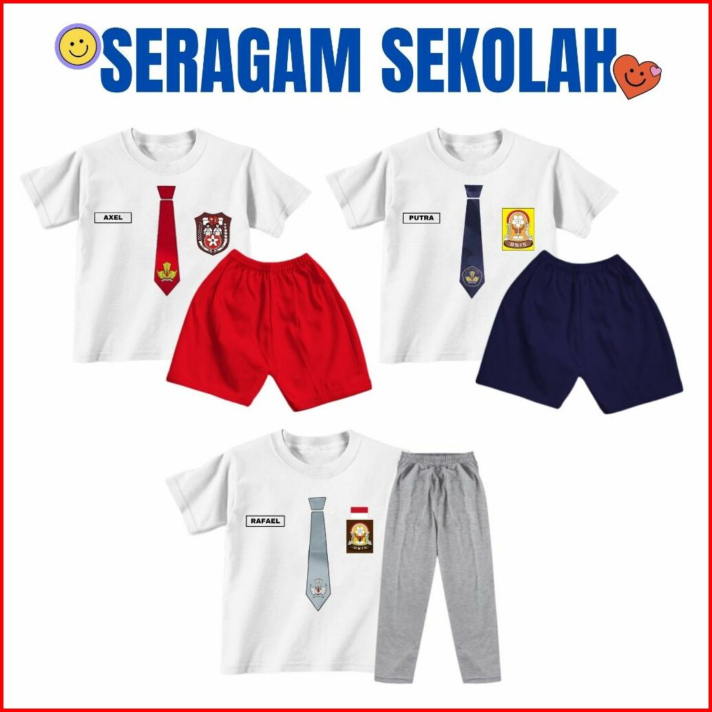 Setelan Seragam Sekolah Sd Smp Sma Free Nama Untuk Bayi Dan Anak Laki-laki Katun Combed 30s