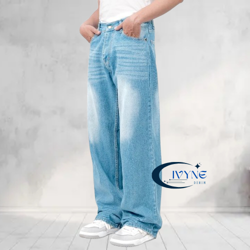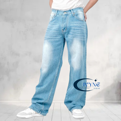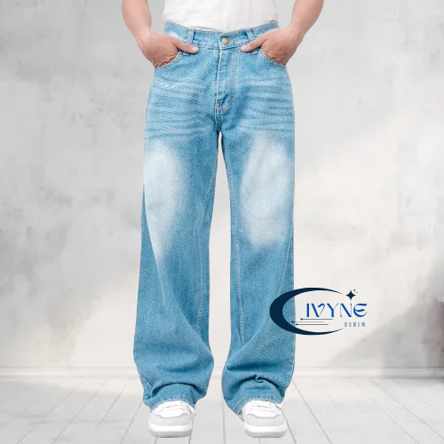 Celana Jeans Panjang Pria Koreanstyle Celana Losefit Wisker Retro/Beggy Jeans Pria Gombrang Skena Wide Leg
