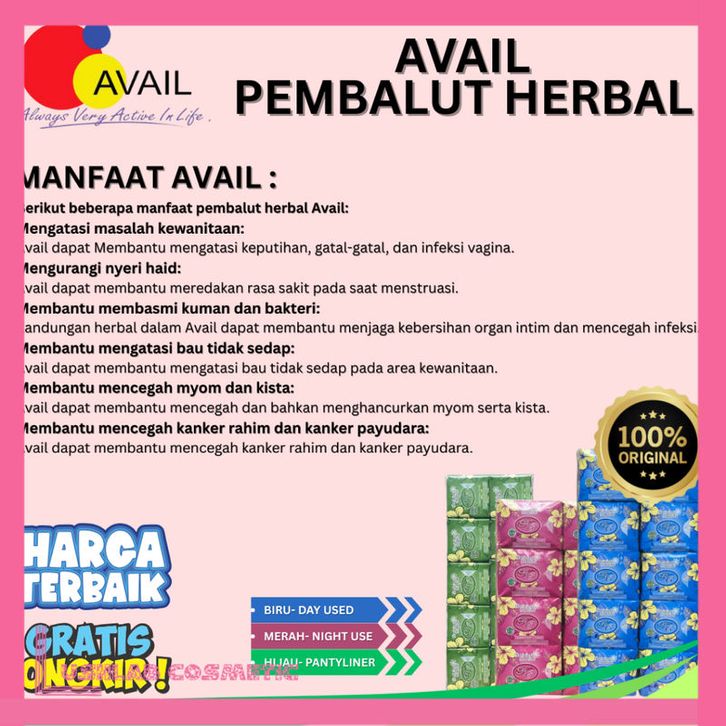 Avail Pembalut Herbal Hijau Biru Merah Bal Original