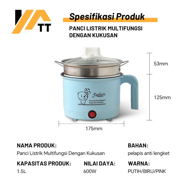 YATT Panci Listrik La-p-isan Keramik 1.5 L ele-ktrik Free Kukusan Stainless / Rice Cooker&Panci Goreng