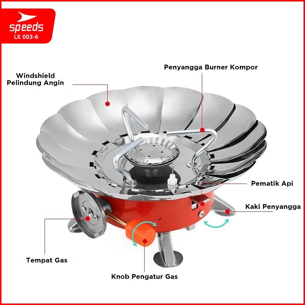 Speeds Kompor Camping Alat Masak Alam Mini Kompor Lipat Bunga Anti Angin Windproof Nesting Portable Tas 003-6