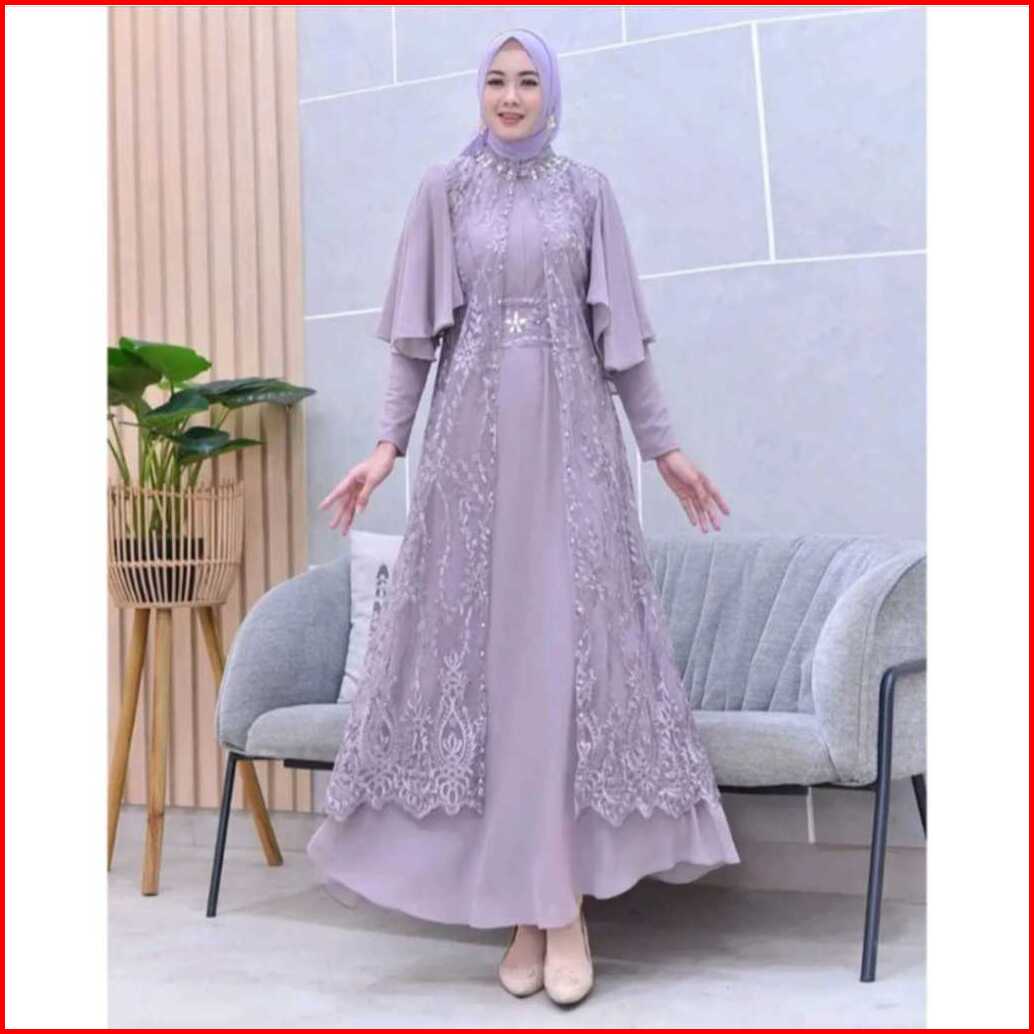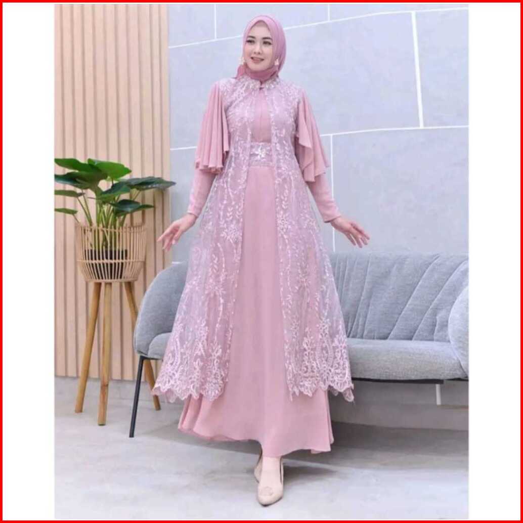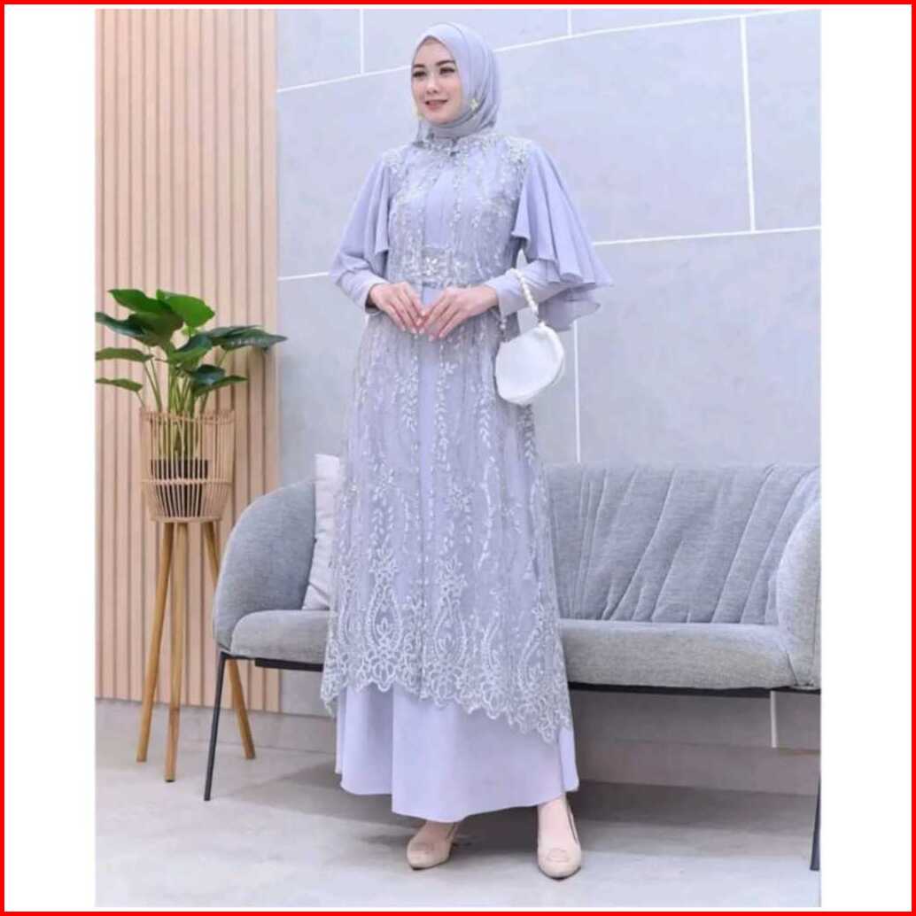 Dress Clarisa Inner Outer Brukat Terbaru 2024 Free Belt Gamis Pesta Brukat Kondangan Jumbo Ld 120