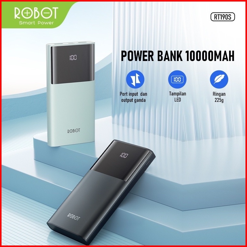 Robot Power Bank Rt190s Powerbank 10000mah With Led Dual Input And Output Port Type C Micro Garansi Original Resmi