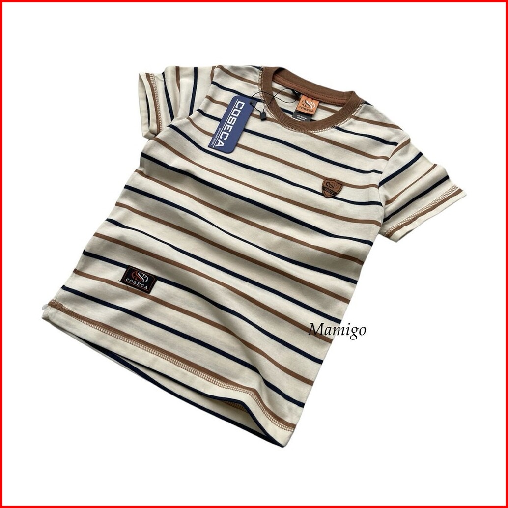 Coseca Baju Kaos Salur Stripe Distro Anak Laki - Laki Umur 1 -12 Tahun Bahan Katun Cvc 24s