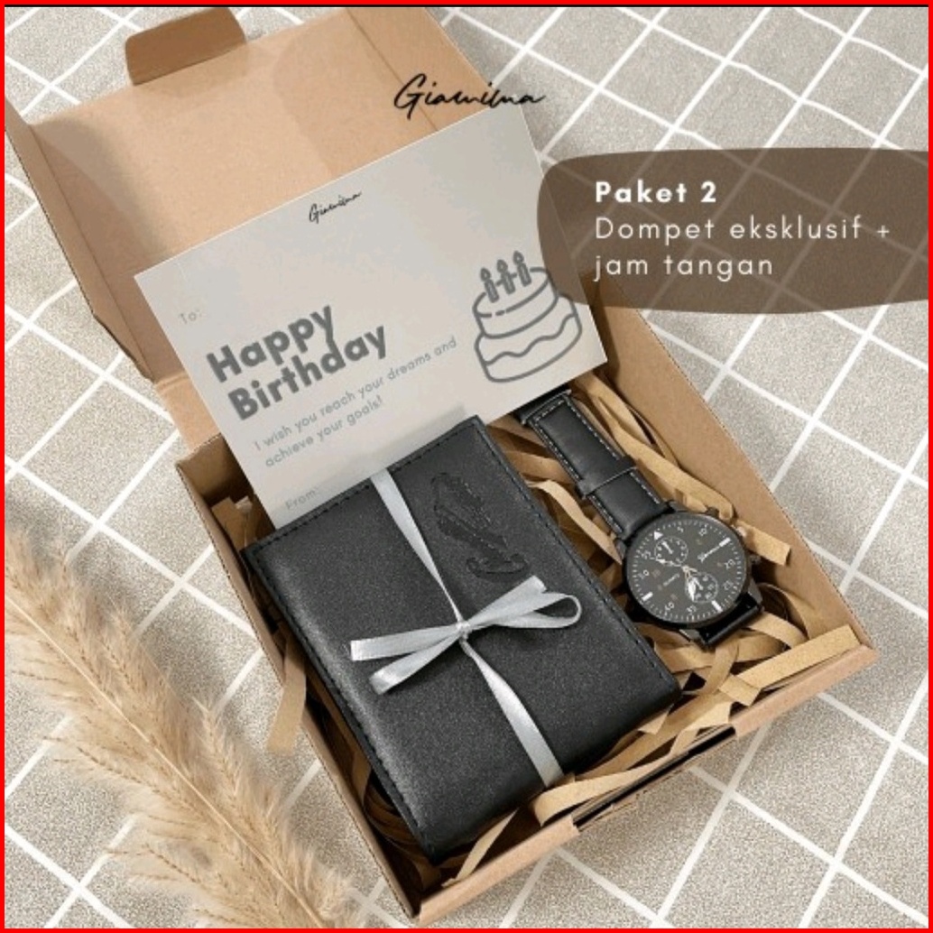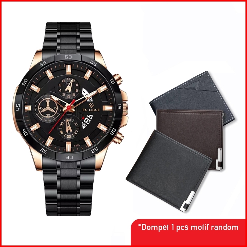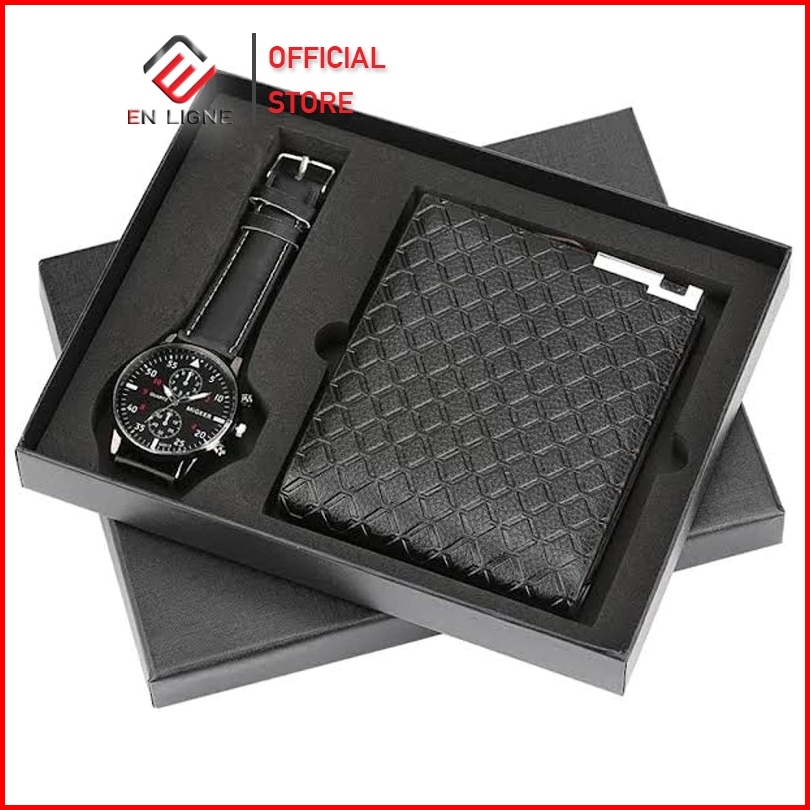 En Ligne - Jam Tangan Pria Set - Jam Tangan Gift - Jam Tangan Kado - Jam Tangan Dompet Set - Kado Ultah - Hampers