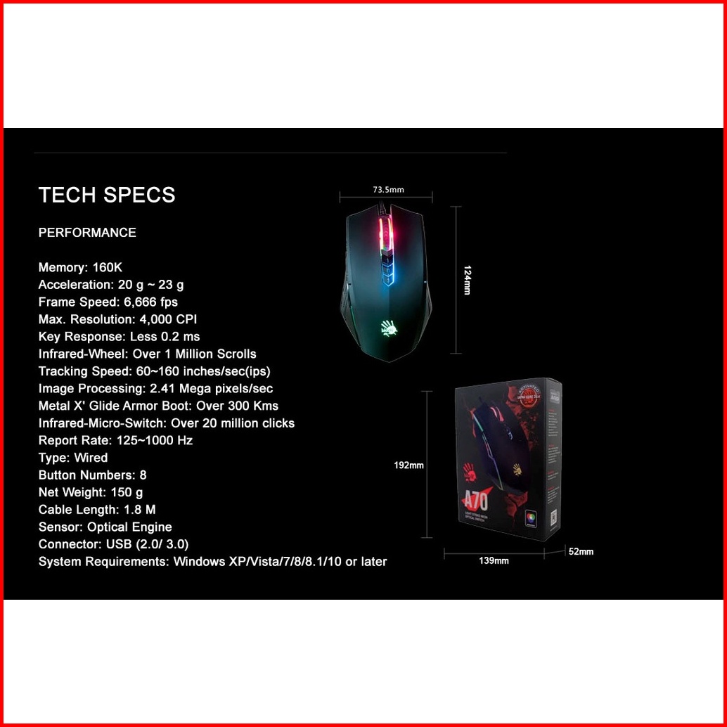 Bloody A70 Light Strike Gaming Mouse Drag Click Mouse Activated Ultra Core 4 Matte Black Crack