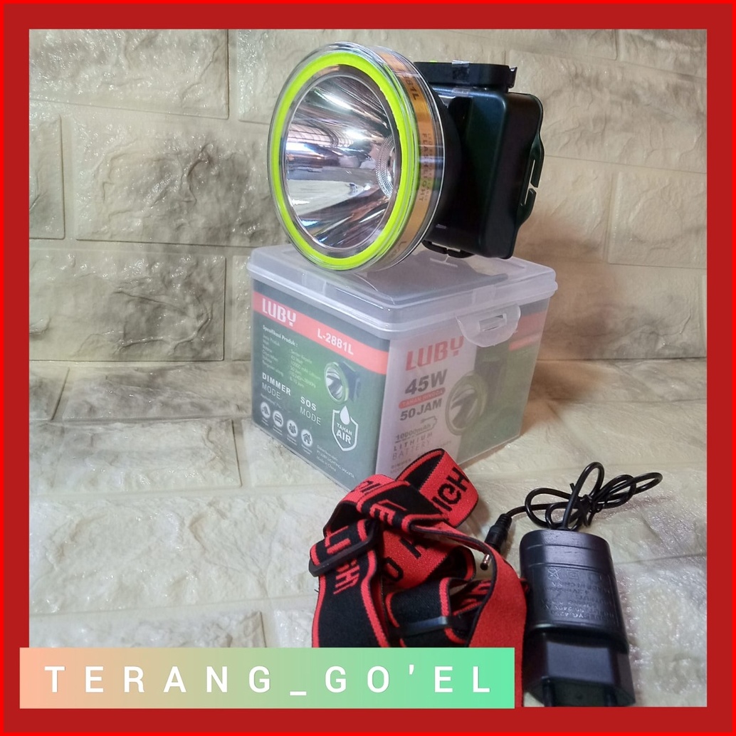 Luby Senter Kepala Led Super Terang Lithium L 2881l L 2881k Lampu Putih Kuning 45watt Senter Kepala Cas Tahan Air