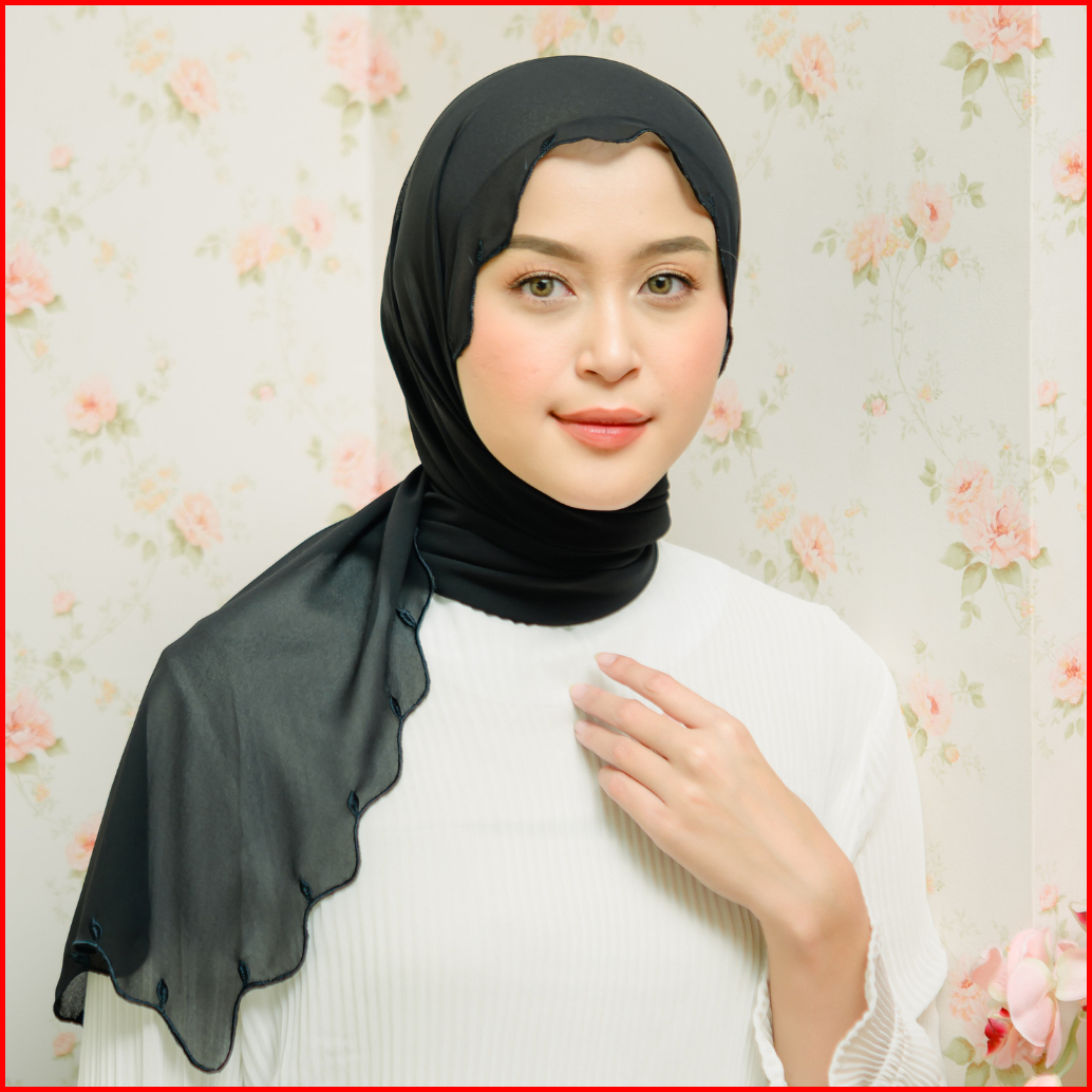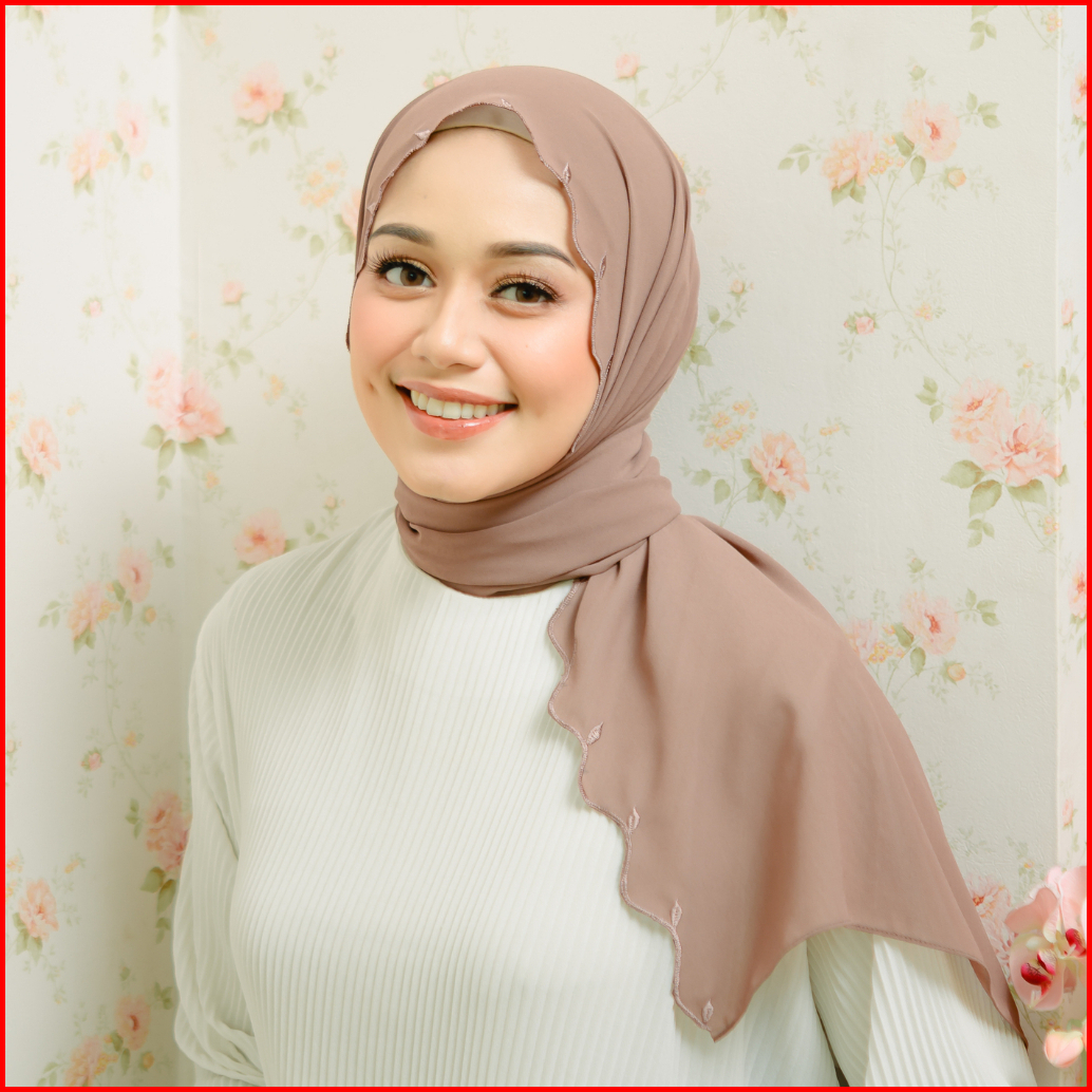 Lozy Hijab - Jade Classic Shawl Pashmina Embroidery Babydoll Bordir Daun