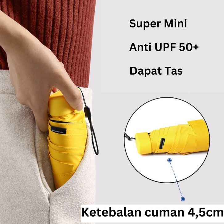 Colfi Payung Lipat Super Mini Ukuran 15 Cm Multi Fungsi Tahan Hujan UV UPF 50 Payung Mini Segi Kotak Cute