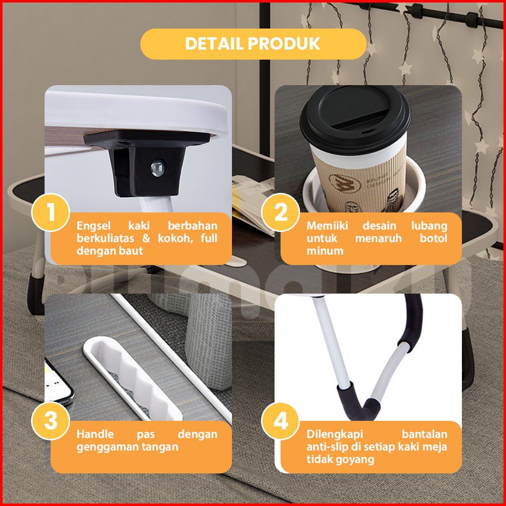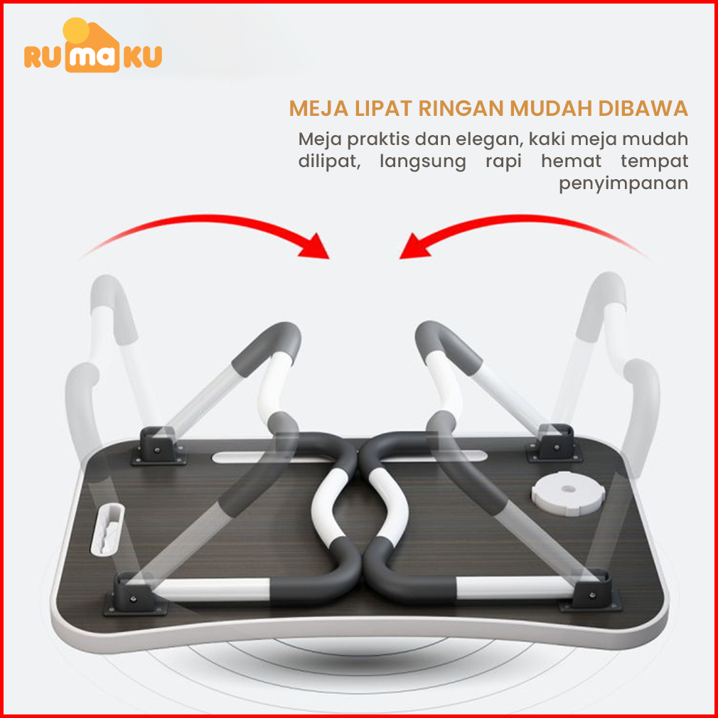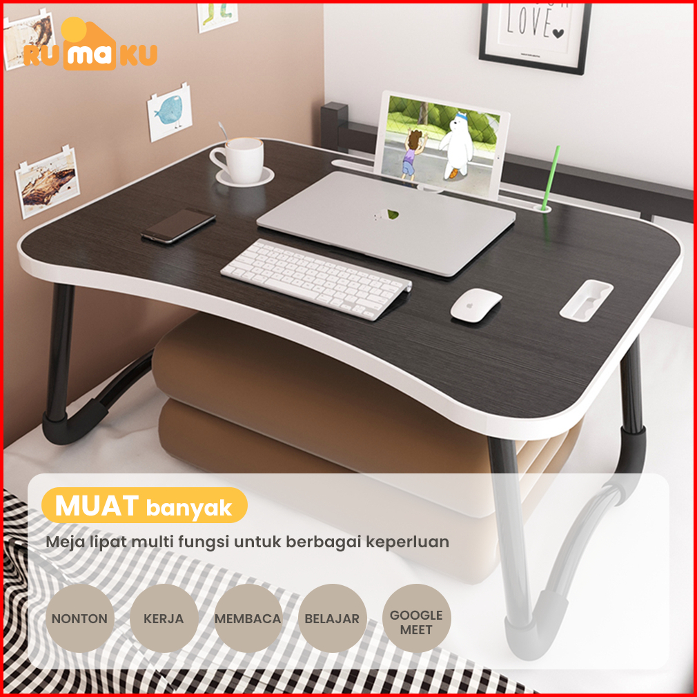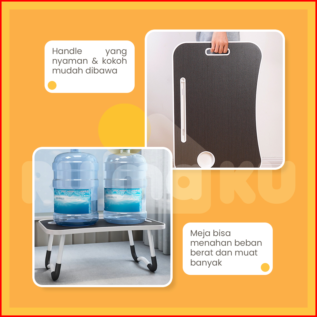 Rumaku Meja Lipat Belajar Laptop Jumbo Ukuran 60x40 Cm Dengan Handle Motif Polos Anti Slip Bahan Kayu Kokoh Berkualitas