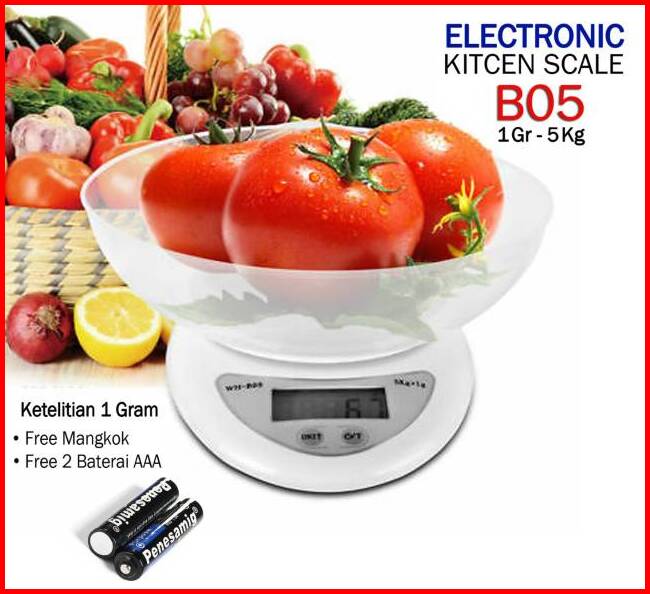 1kg Muat 4pc Timbangan Dapur Digital Mangkok Timbangan Kue Digital Elektric Kitcen Scale 5kg