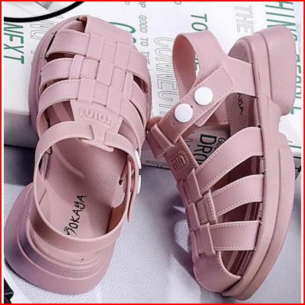 Sandal Gladiator Jelly Anak Cewek Tali Belakang Kancing Putih Motif Min Super Pretty Simple Elegant Import Mokaya Size 2