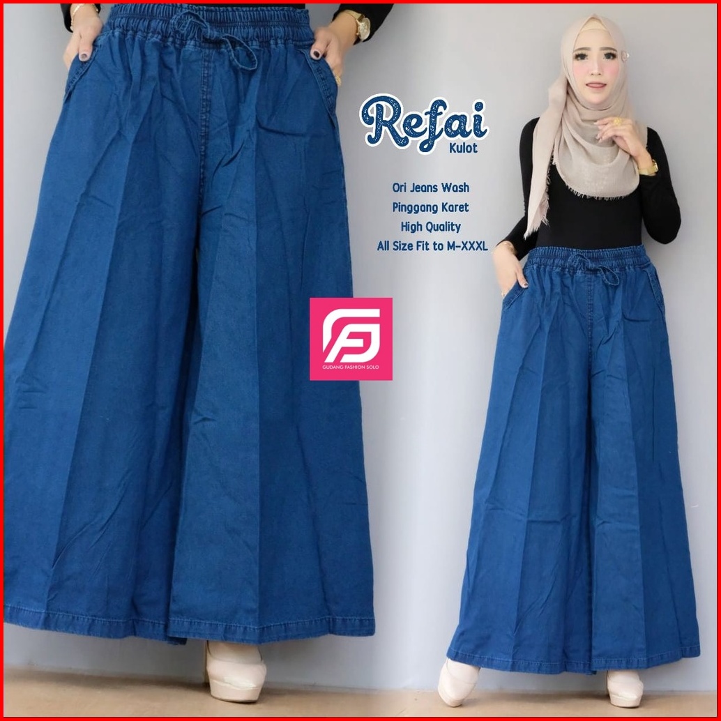 Celana Kulot Wanita - Celana Kulot Jeans - Kulot Wanita Jumbo - Celana Kulot Refai Terbaru