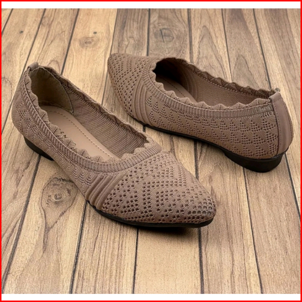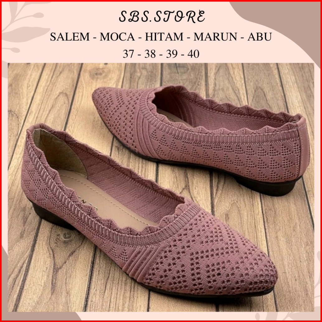 Sepatu Kerja Wanita Flat Shoes Rajut Import Sandal Balet Pesta Terbaru