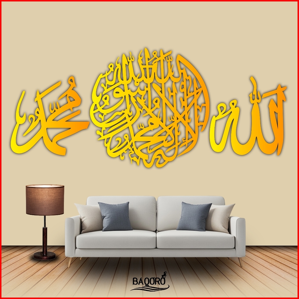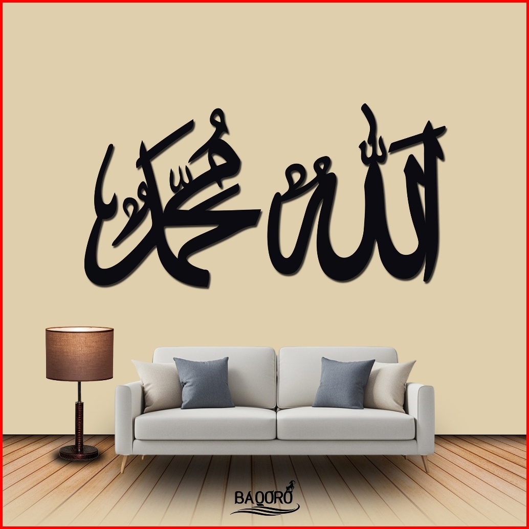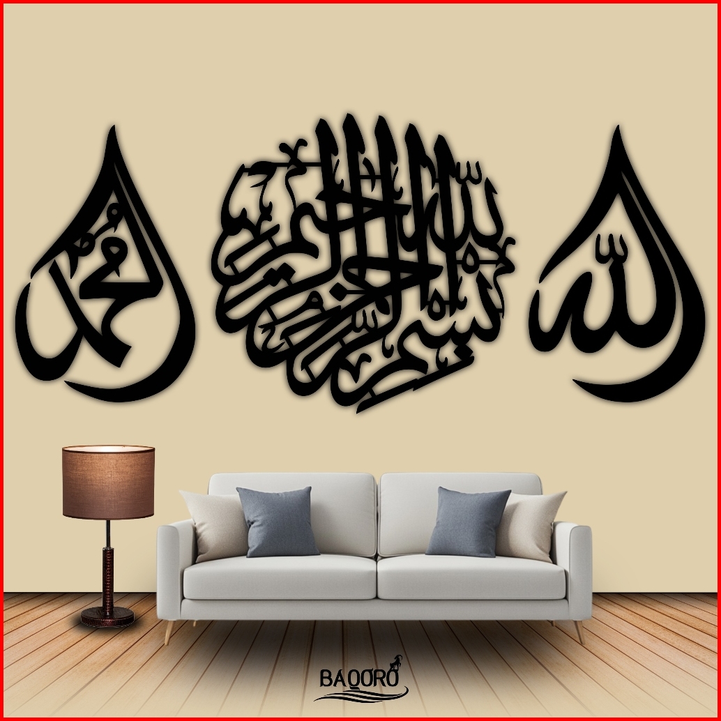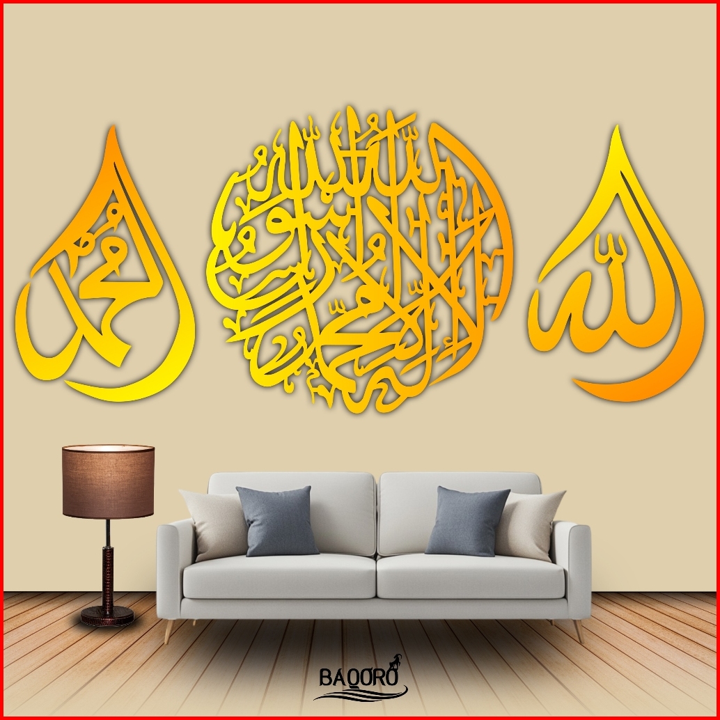 1 Set Kaligrafi Akrilik Hiasan Dinding Allah Muhammad Tauhid Bismillah Silver Hitam Mirror