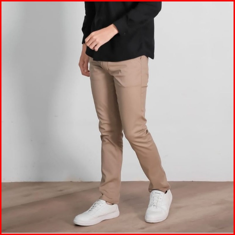 Celana Chino Panjang Pria Slimfit Kerjaharian Santai Casual Formal Hitam Abu Cream Mocca Size 27-38