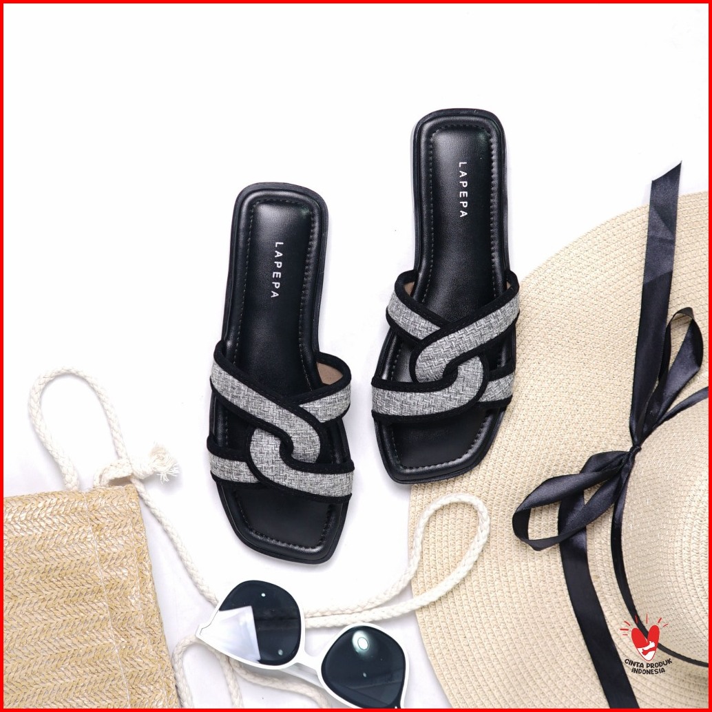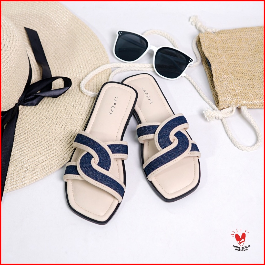 Lapepa - Olla Sandal Flat Jeans Wanita Sendal Slop Teplek Selop Cewek Slip On Kekinian