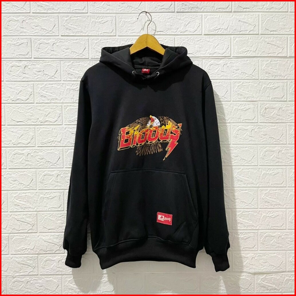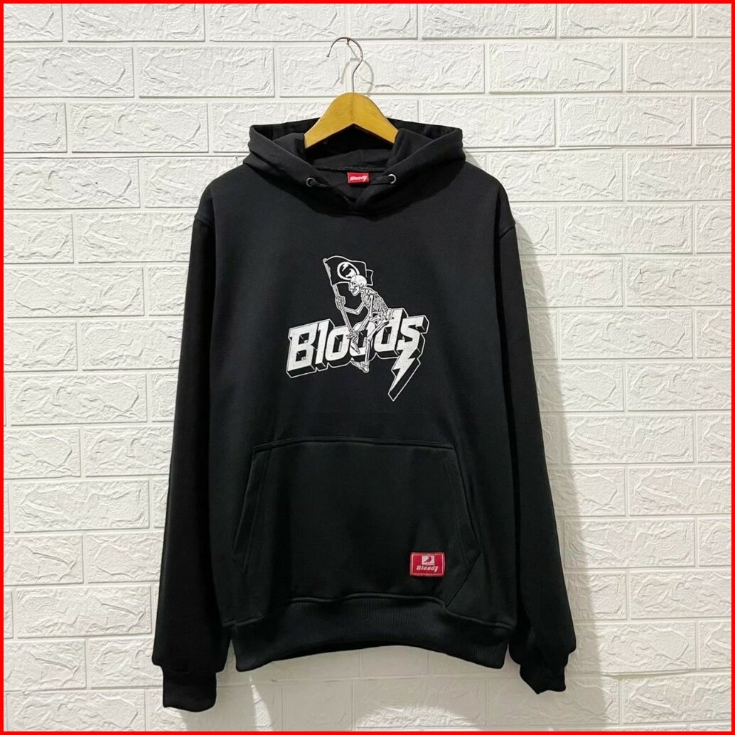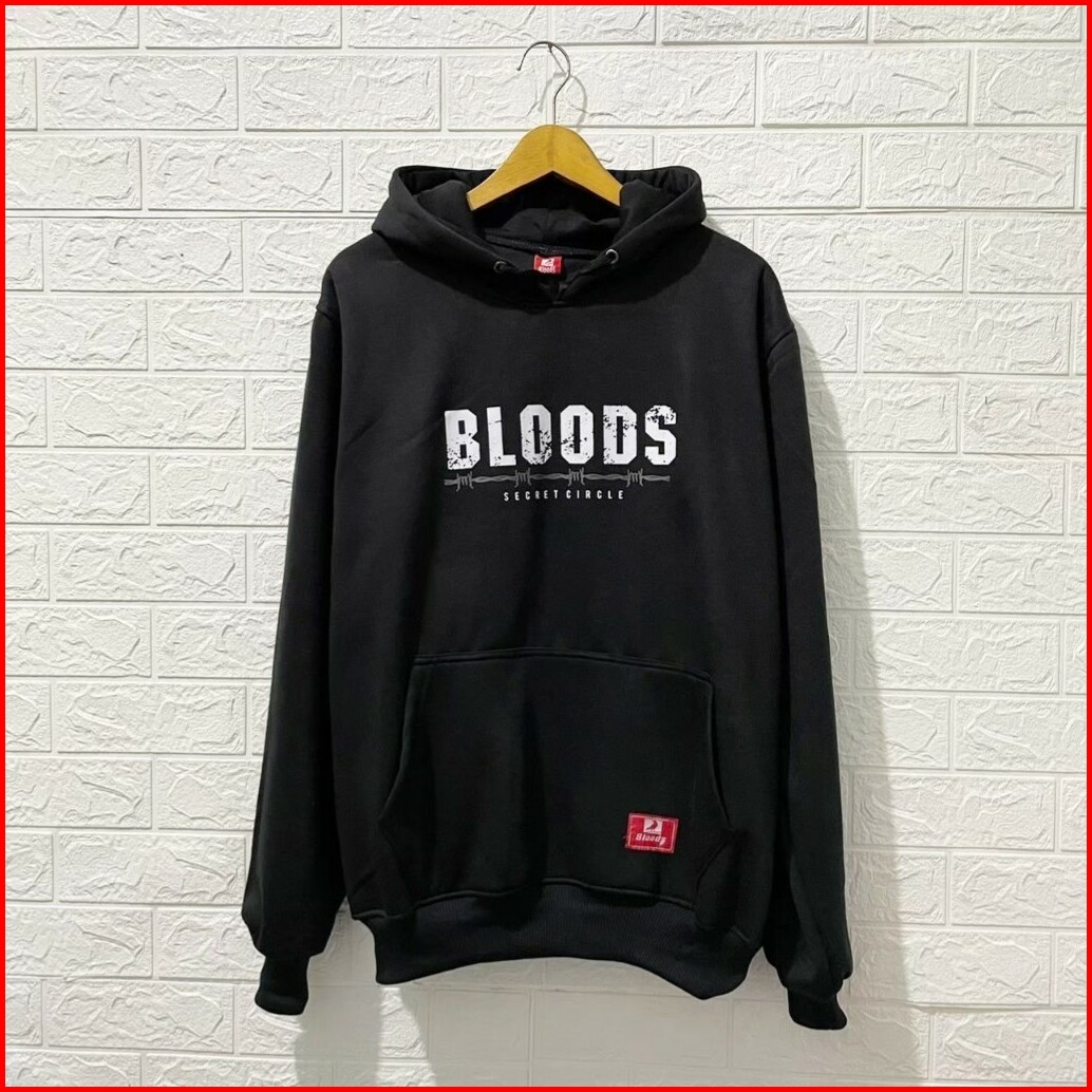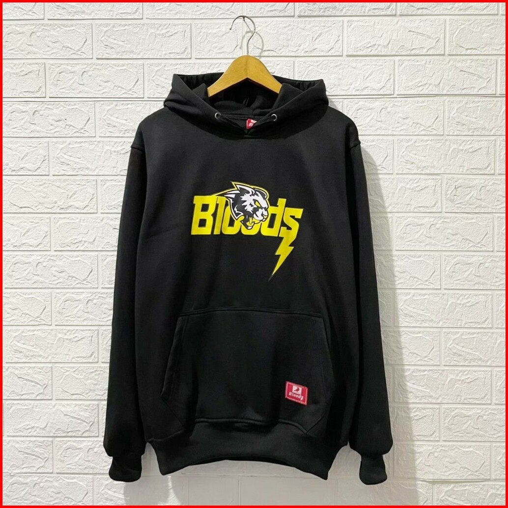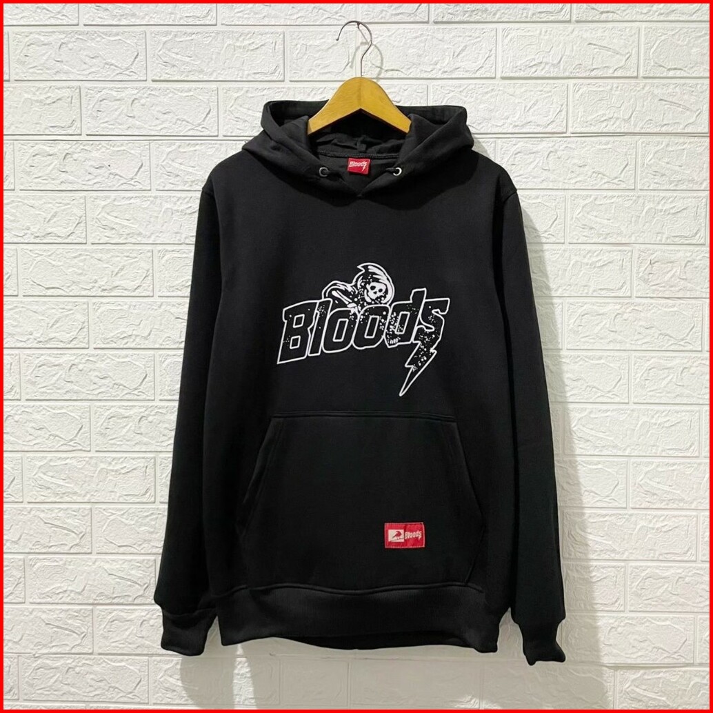 Jaket Sweater Hoodie Bloods Distro Flecce Hitam Tebal Murah Premium Terlaris