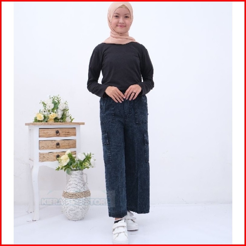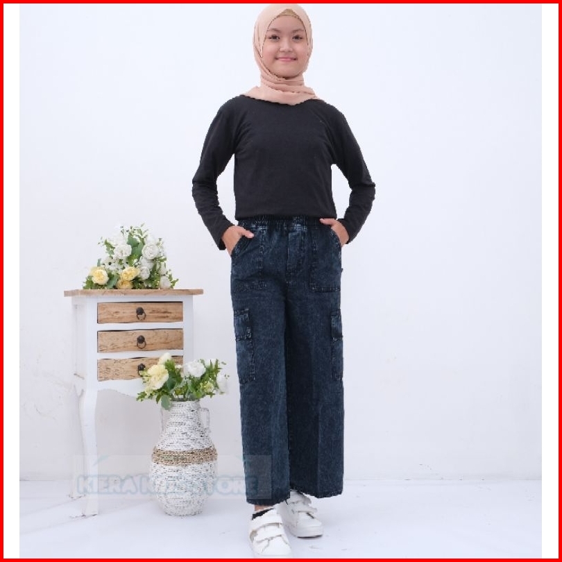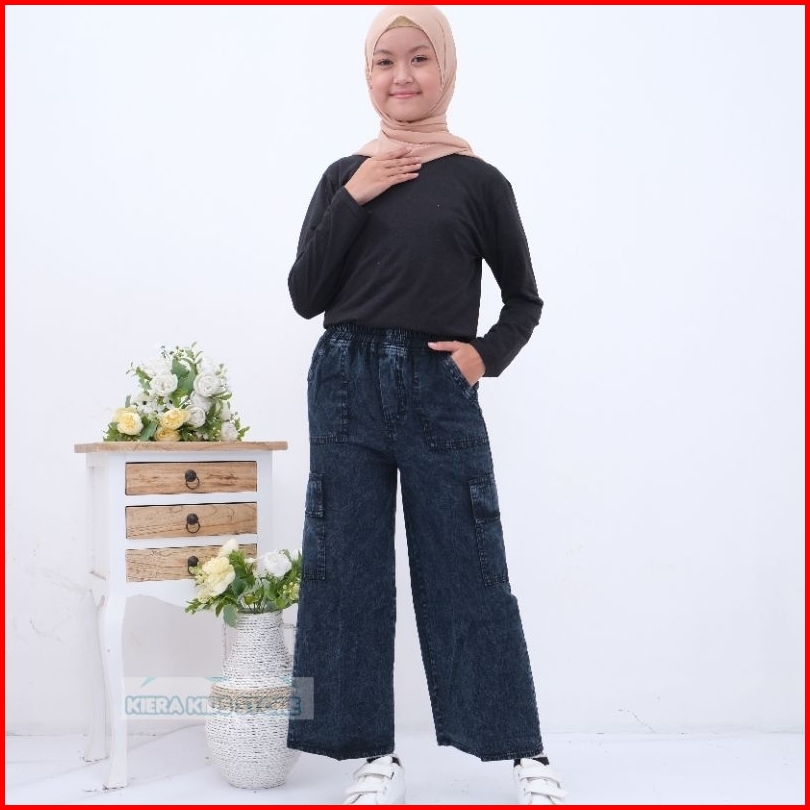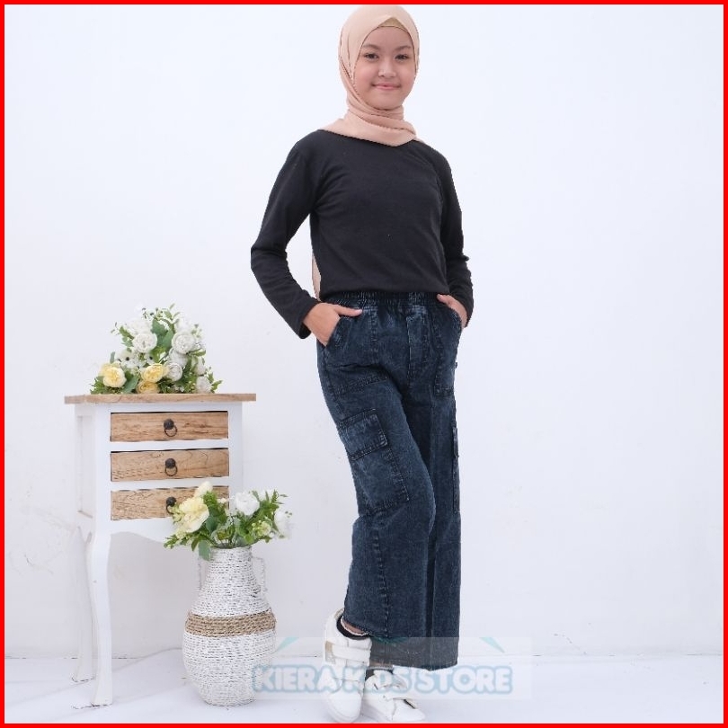 Celana Kulot Cargo Jeans Anak Perempuan Usia 6-13 Thn Kulot Cargo Pants Anak Perempuan
