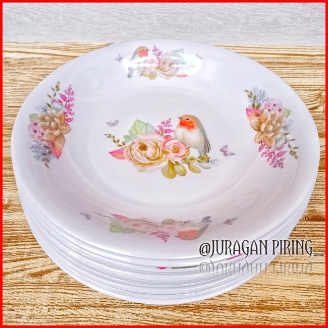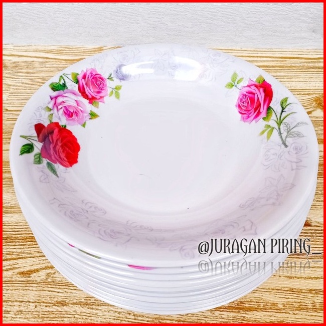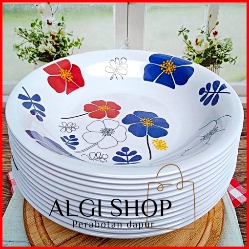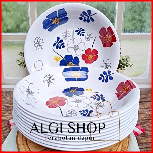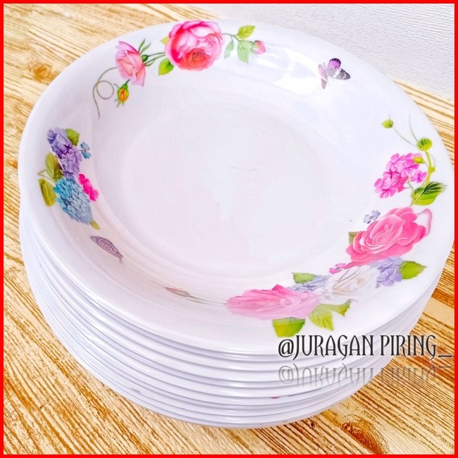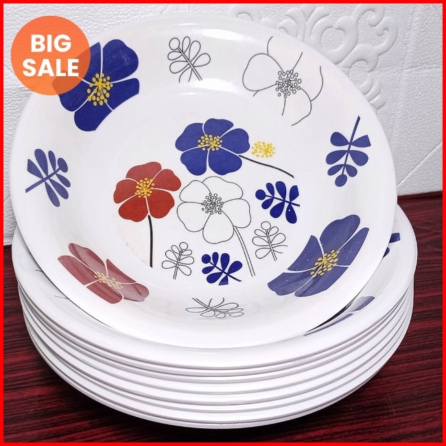 Promo Turun Harga 12pcs Piring Melamin Motif Kembang Asli Singa Singi Diameter 23cm Tahan Panas