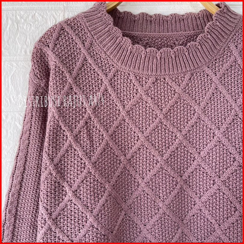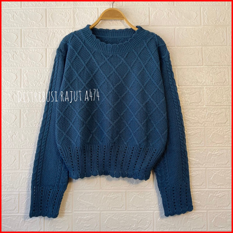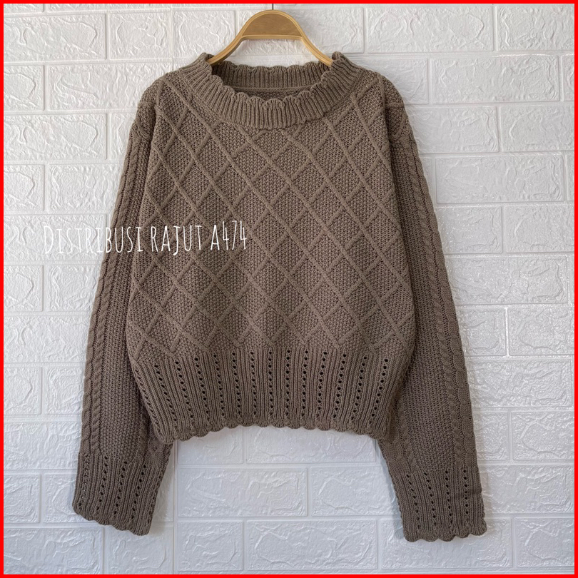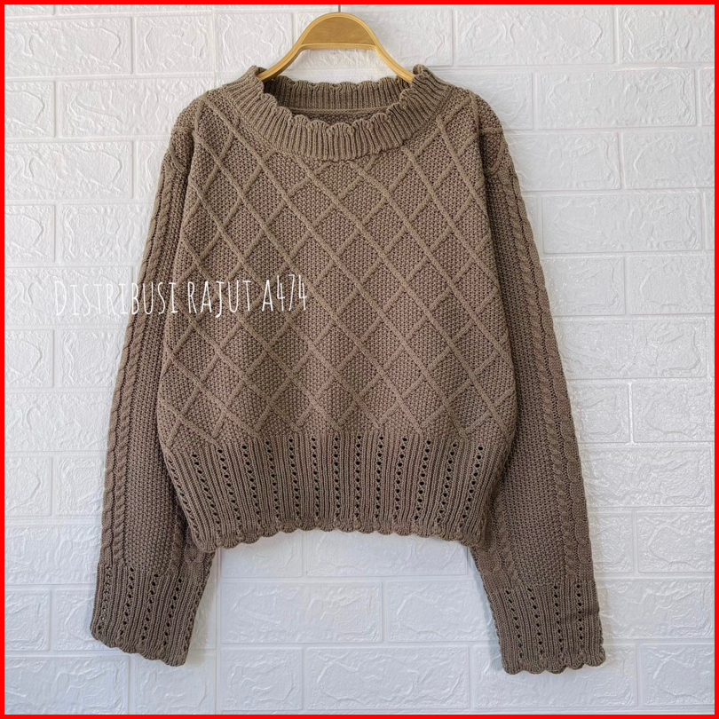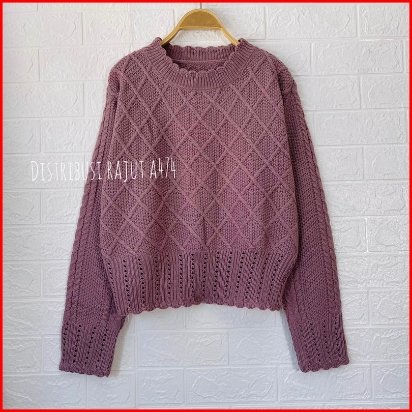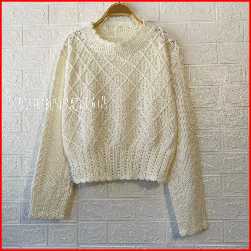 Ruby Crop Sweater Rajut Jaring Motif Renda Blouse Cable Wanita Korea