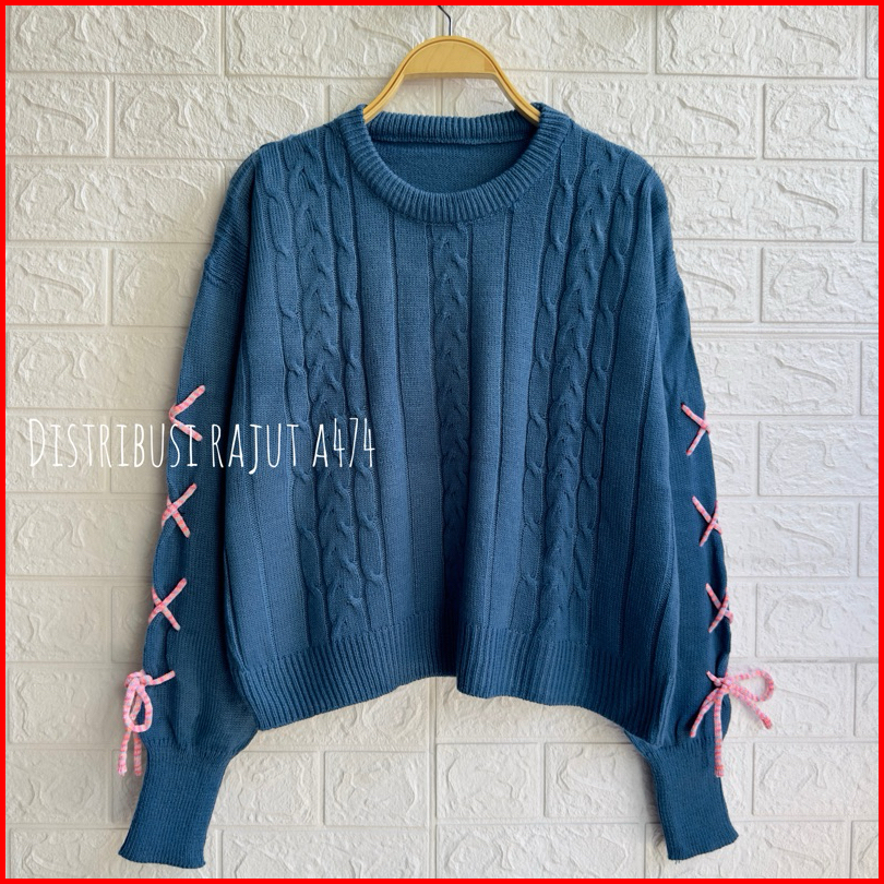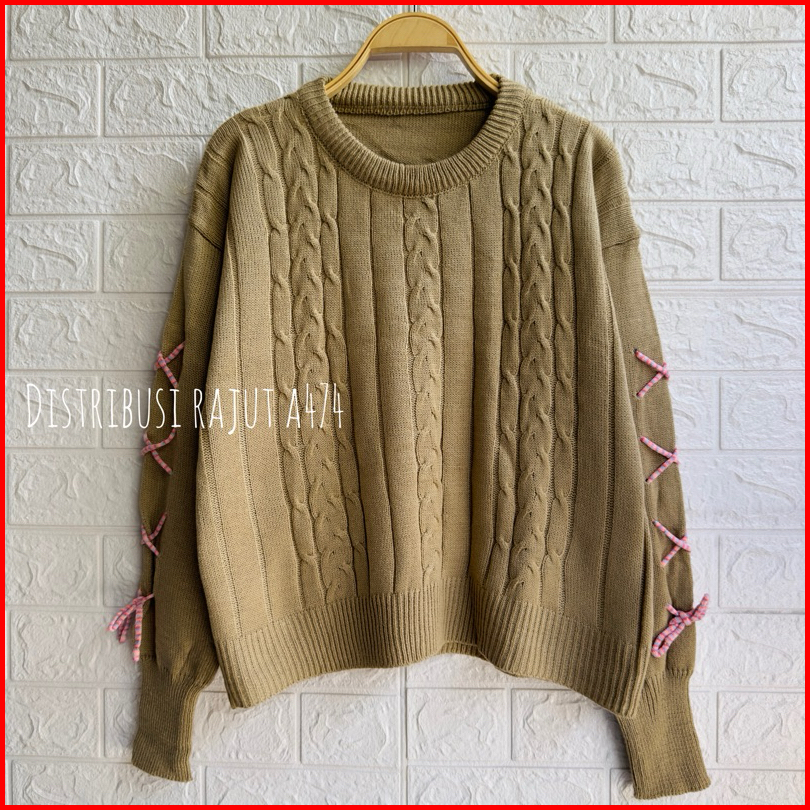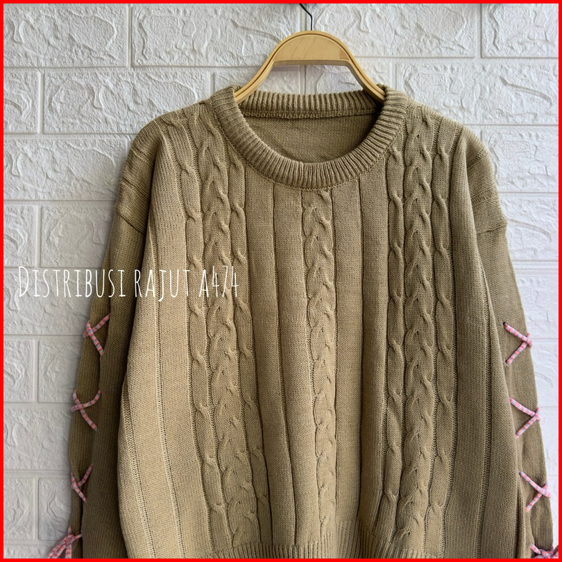 Monay Victoria Baju Atasan Sweater Rajut Cable Strap Wanita Korean Style Kekinian