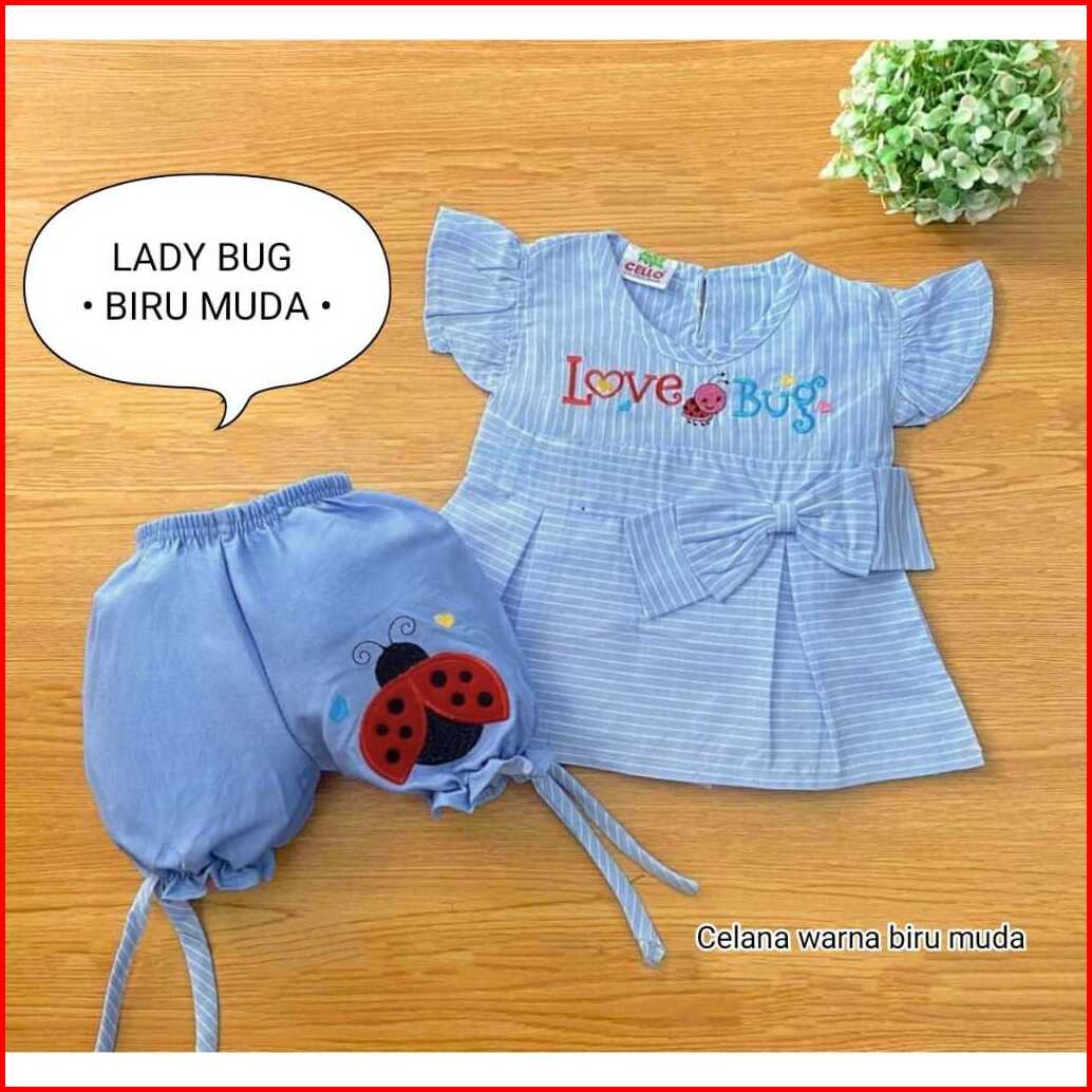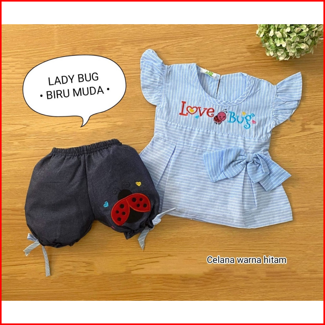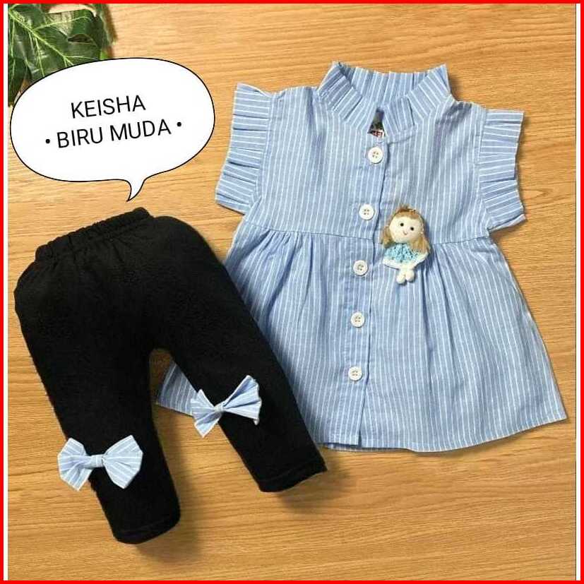 Setelan Baju Anak Perempuan Baju Bayi Cewek Atasan Lengan Pendek Dan Celana Panjang Motif Keisha Denim Usia 0-6 Bulan
