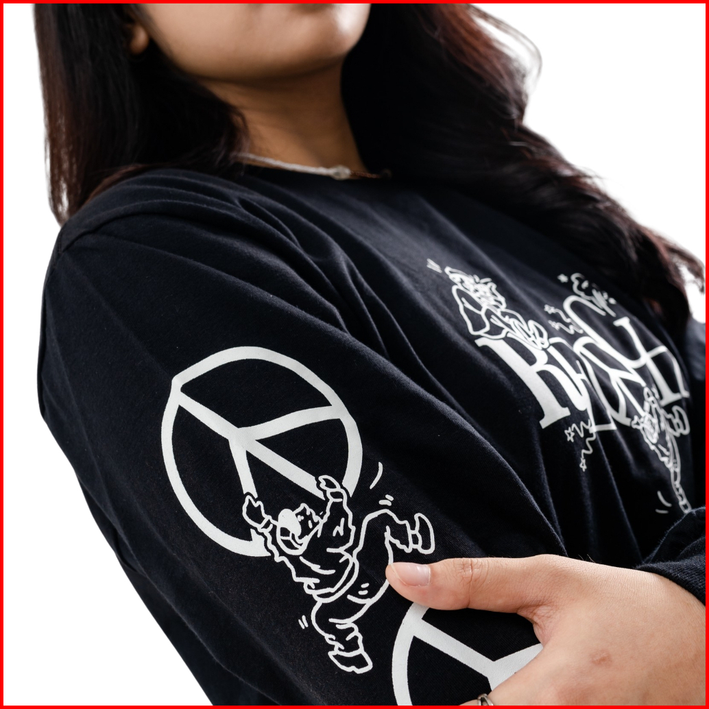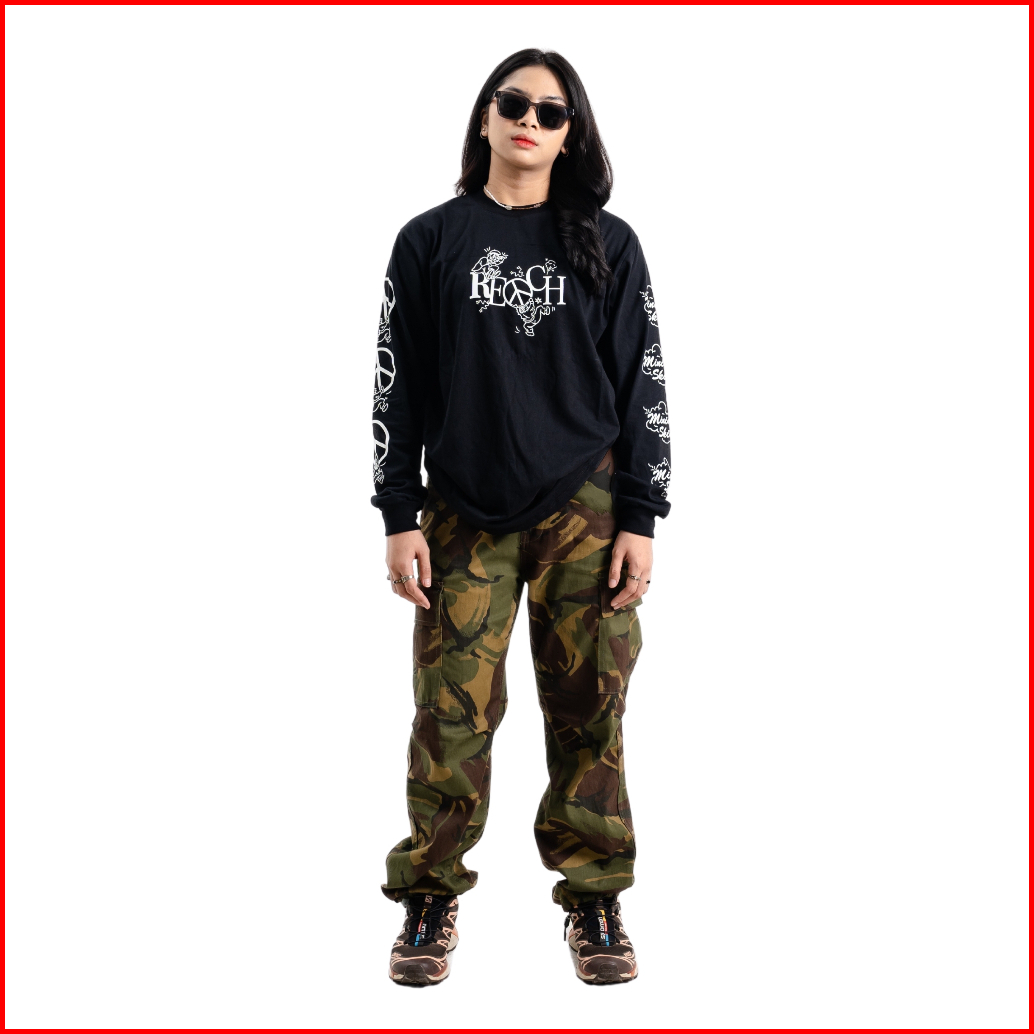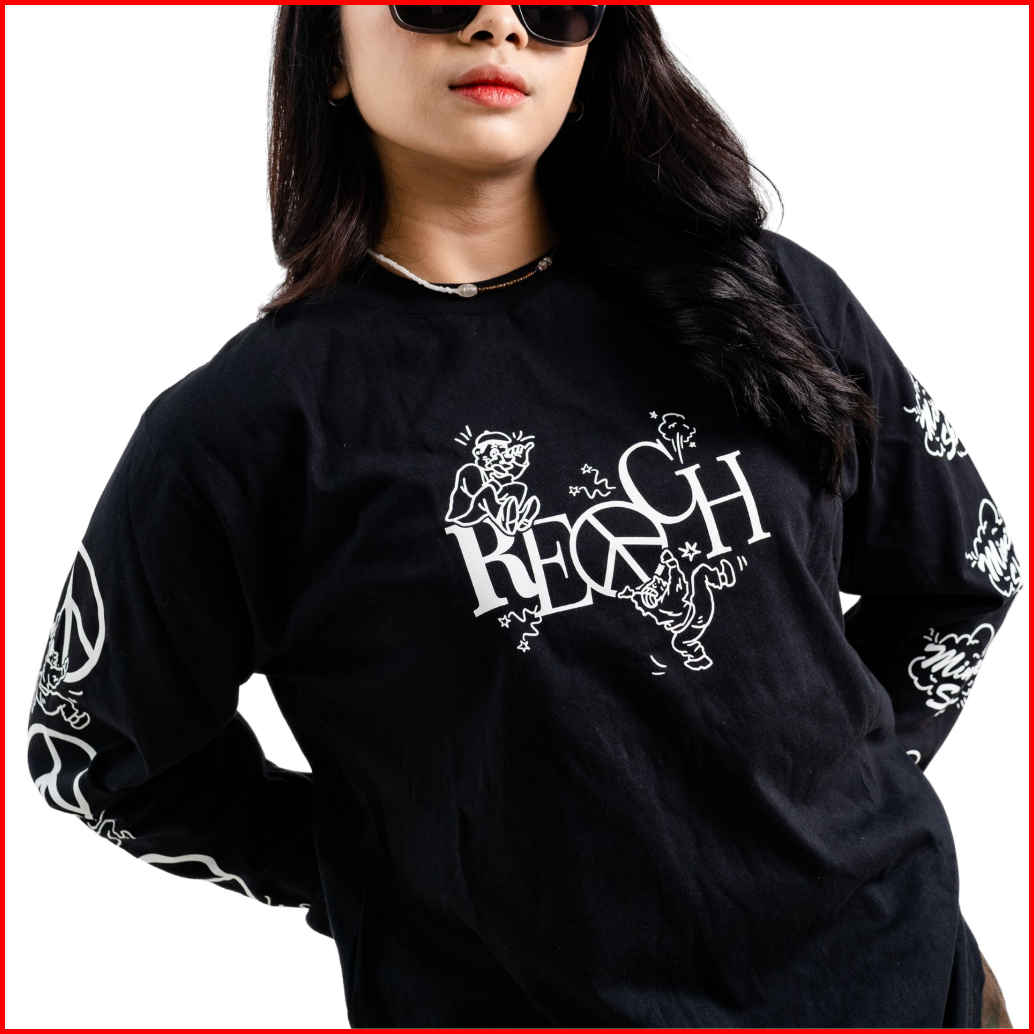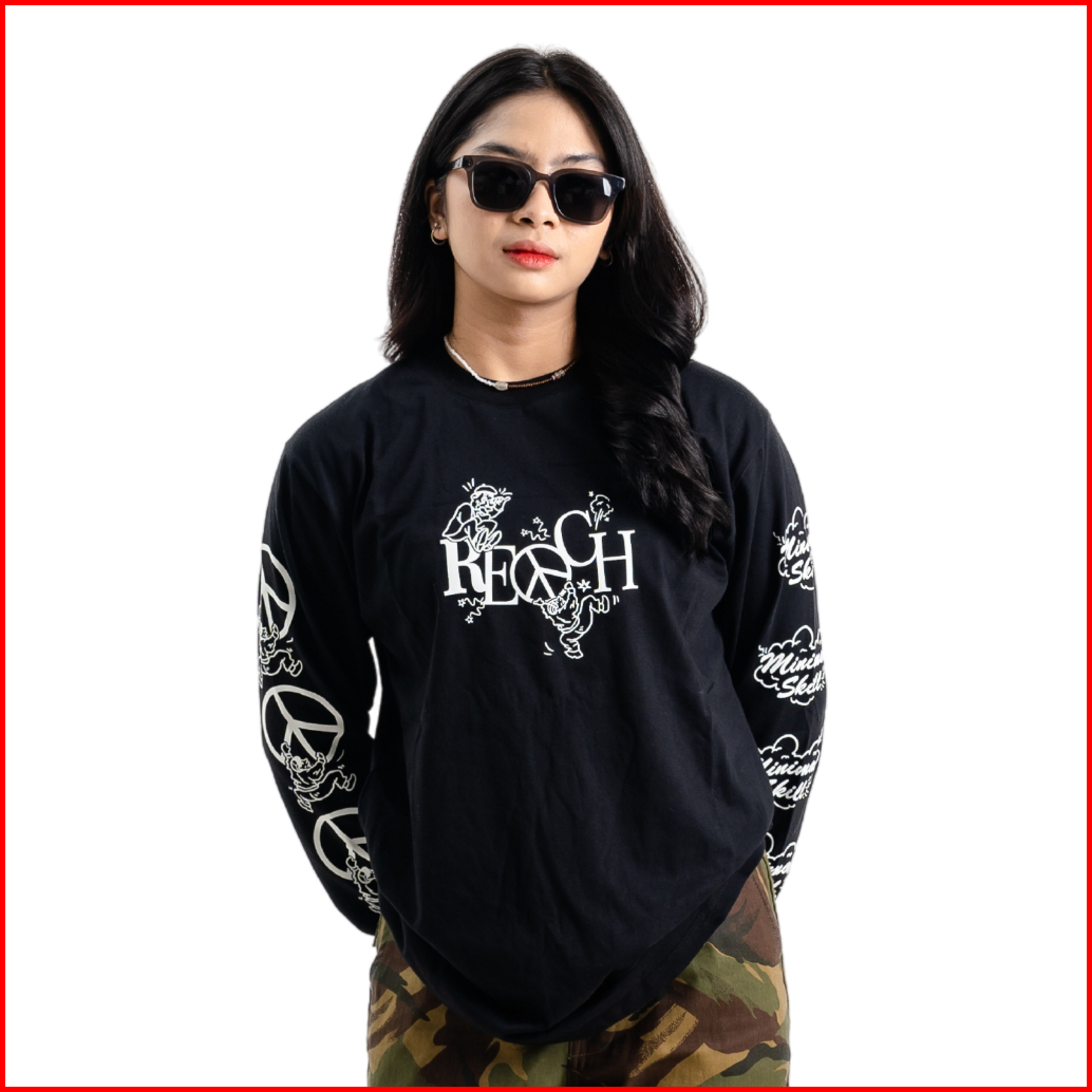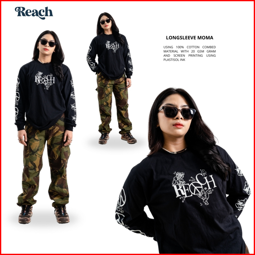 Reach Kaos Lengan Panjang Hitam Cotton Combed 20s Sablon Plastisol