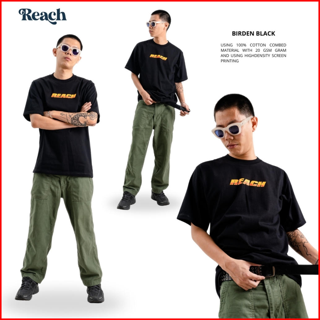 Reach Kaos Pria Lengan Pendek Hitam Cotton Combed Bci Gramasi 200 Gsm