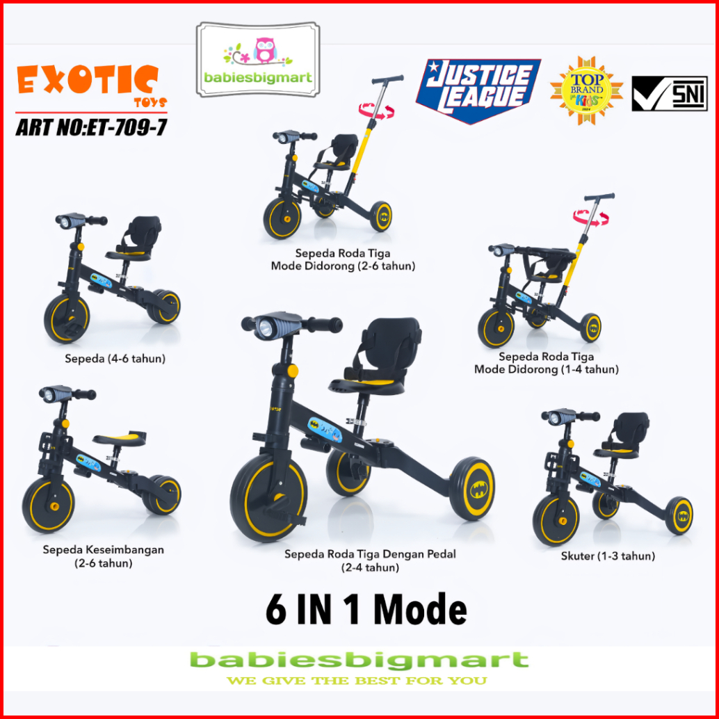 Balance Bike Exotic Et 709 -7 Et 714 Nuwa T32 Dorongan Atur Belok Stir 6 In 1 Sepeda Anak Roda Tiga