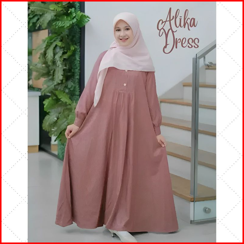 Dress Muslim Remaja Crinkle Airflow Premium Gamis Anak 11 -13 Tahun Alika Dress Kids Baju Muslim Anak Kekinian Gamis Ter