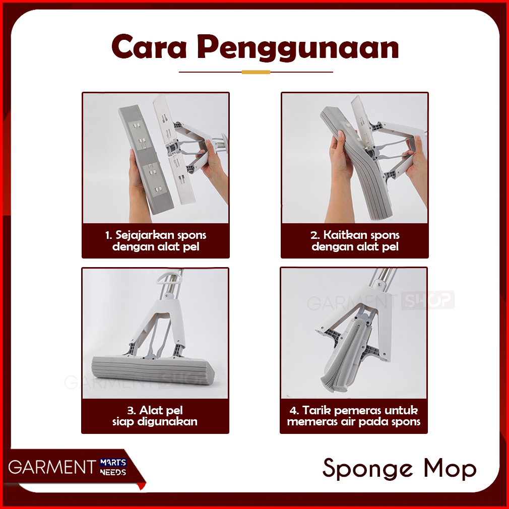 Alat Pel Set Peras Tarik Praktis Karet Pembersih Pelan Pengering Lantai Sodok Pel Busa Serbaguna