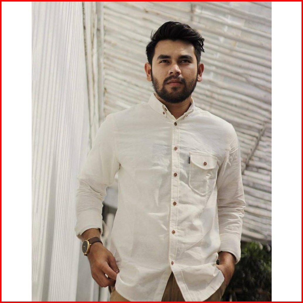 Highty White Plain Cotton Long Sleeve Shirt Kemeja Lengan Panjang