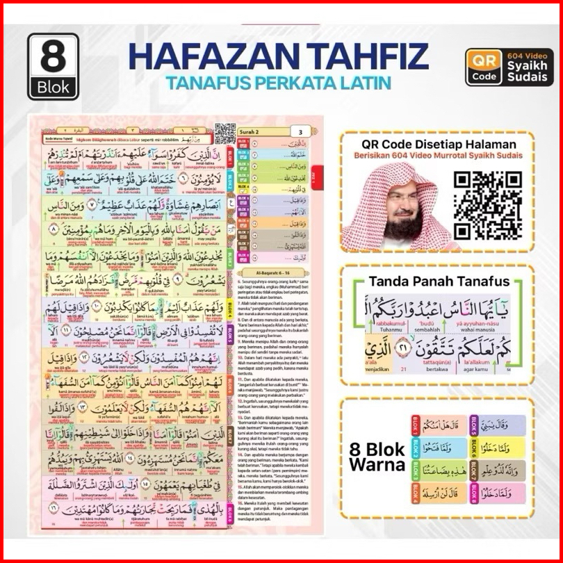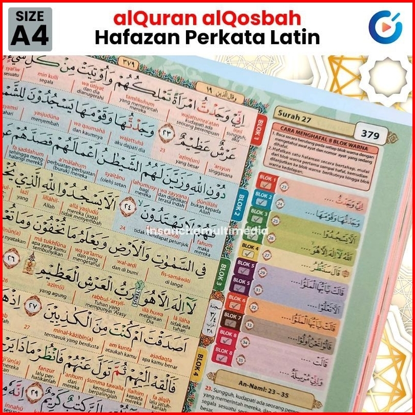 Al Quran Hafazan Tahfiz Perkata Latin A4 Alquran Terjemah Tajwid Hafalan 8 Blok Warna