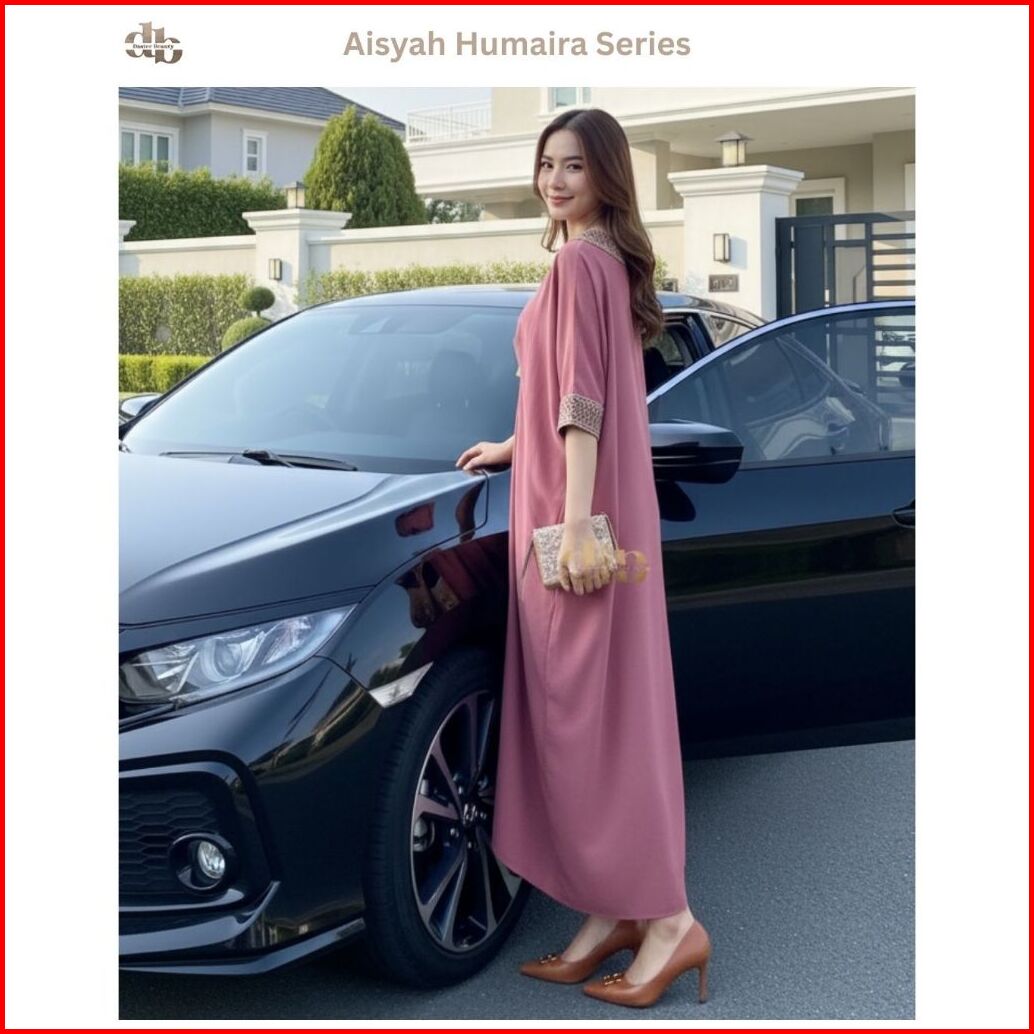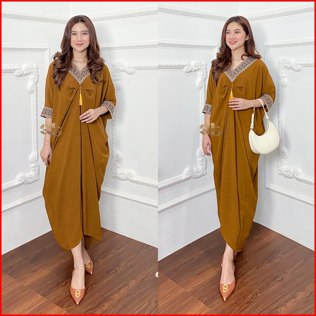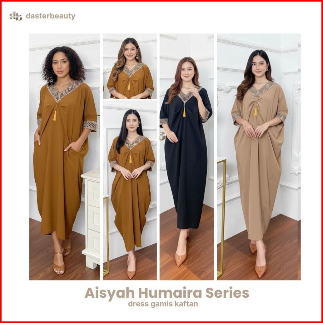 Aisyah Humaira Dress Gamis Kaftan Cringkle Airflow Kombinasi Ld120 Pb 130 Busui