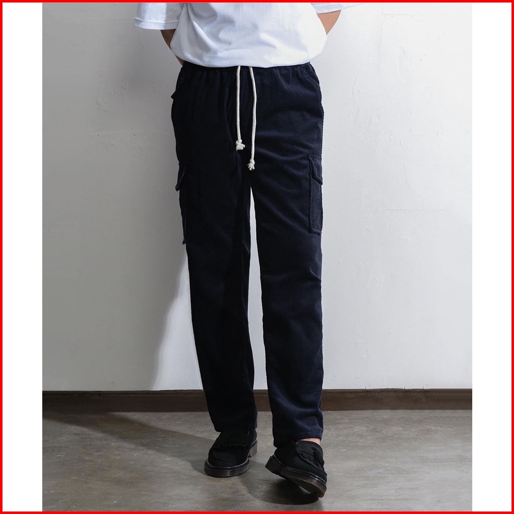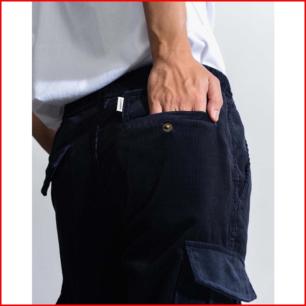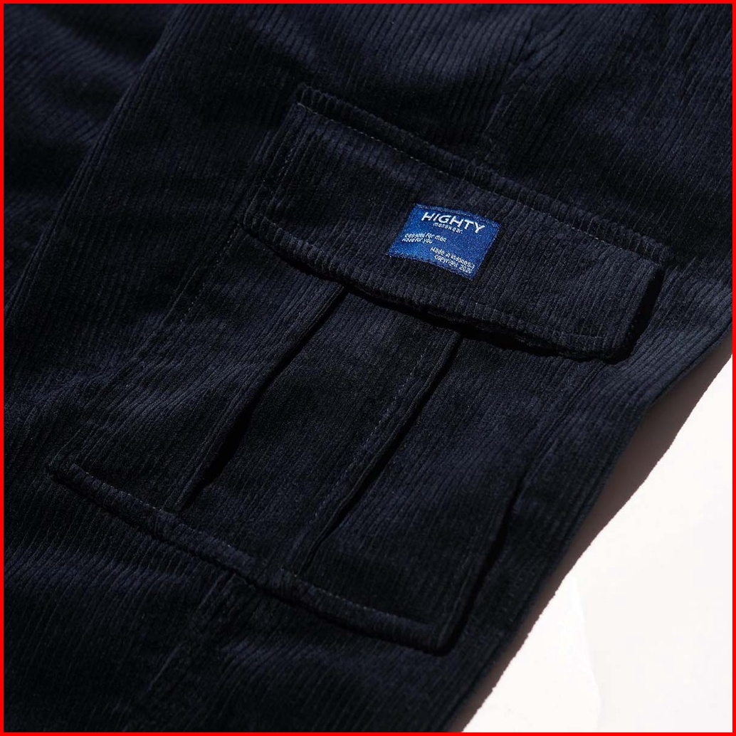 Highty Navy Blue Black Corduroy Cargo Trousers Celana Cargo