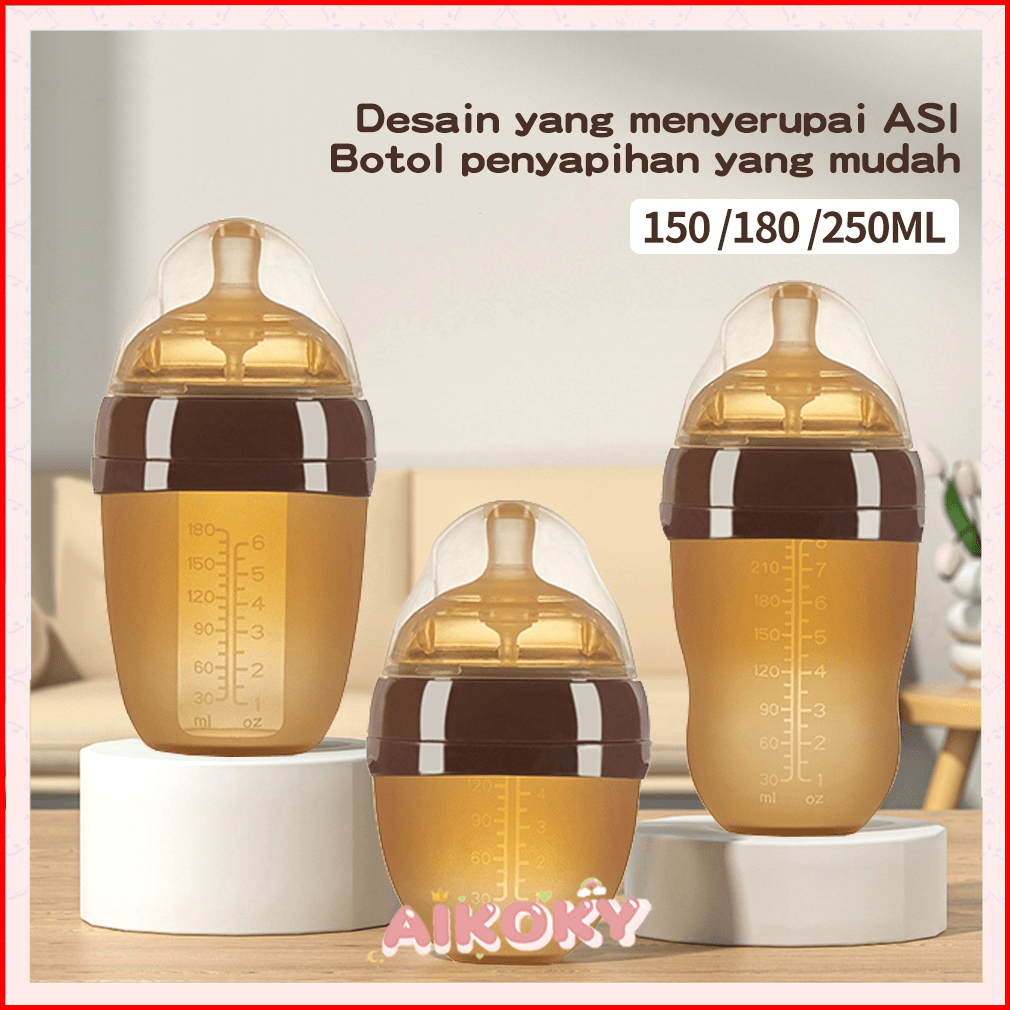 Aikoky Botol Susu Coklat Bayi Bahan Silikon Nano Dengan Sedotan Bpa Free