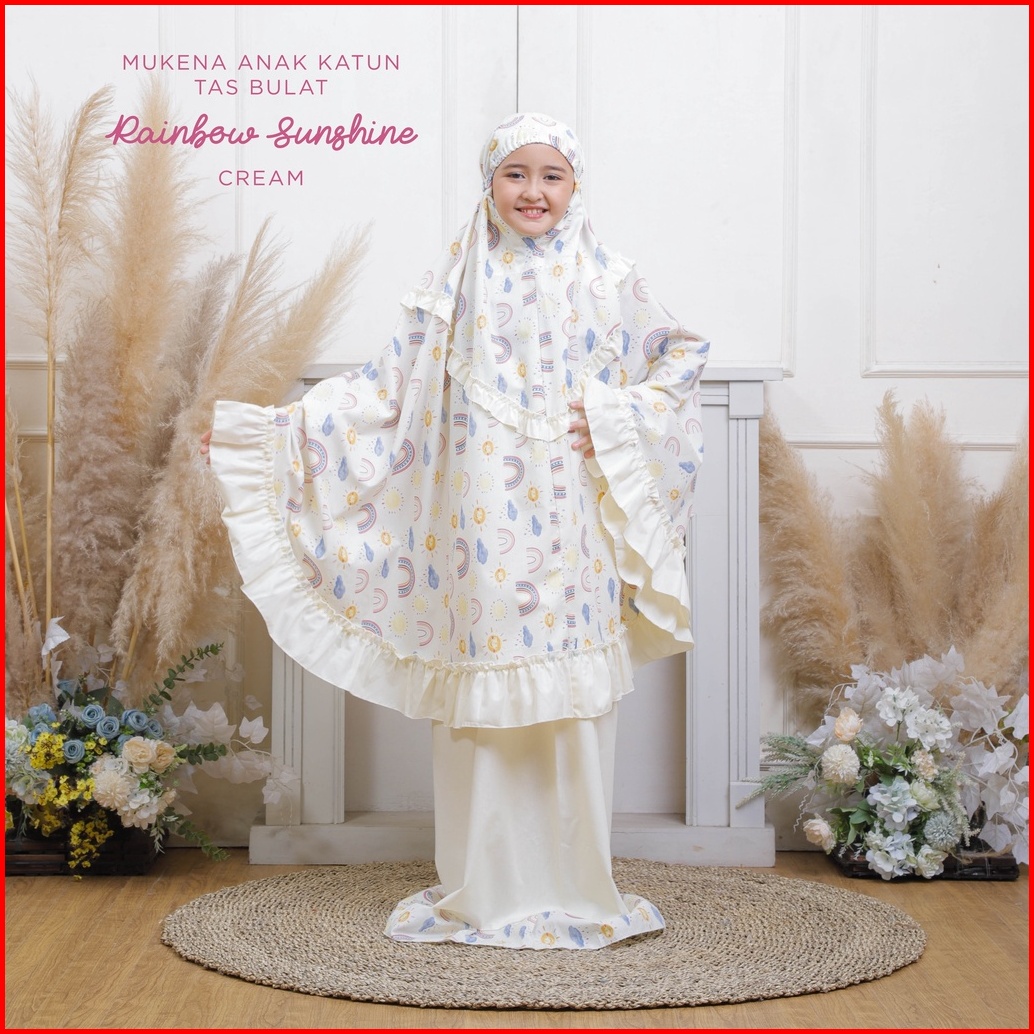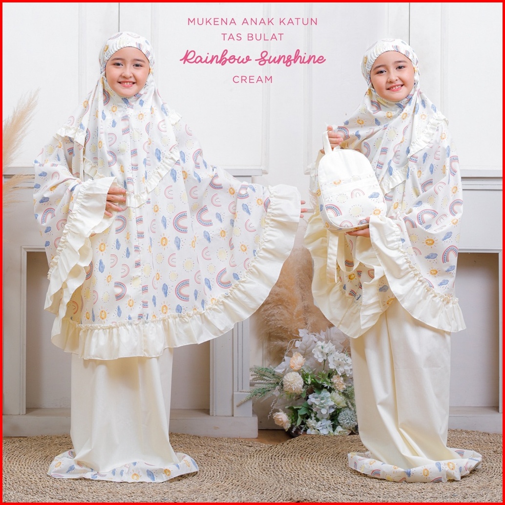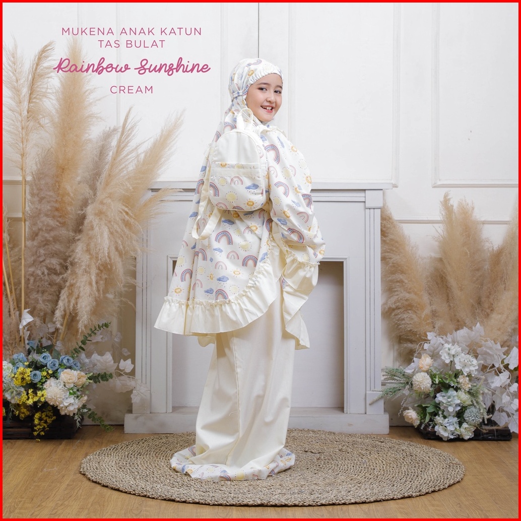 Pusat Mukena Tasik - Mukena Anak Katun Tas Bulat Motif Rainbow Sunshine