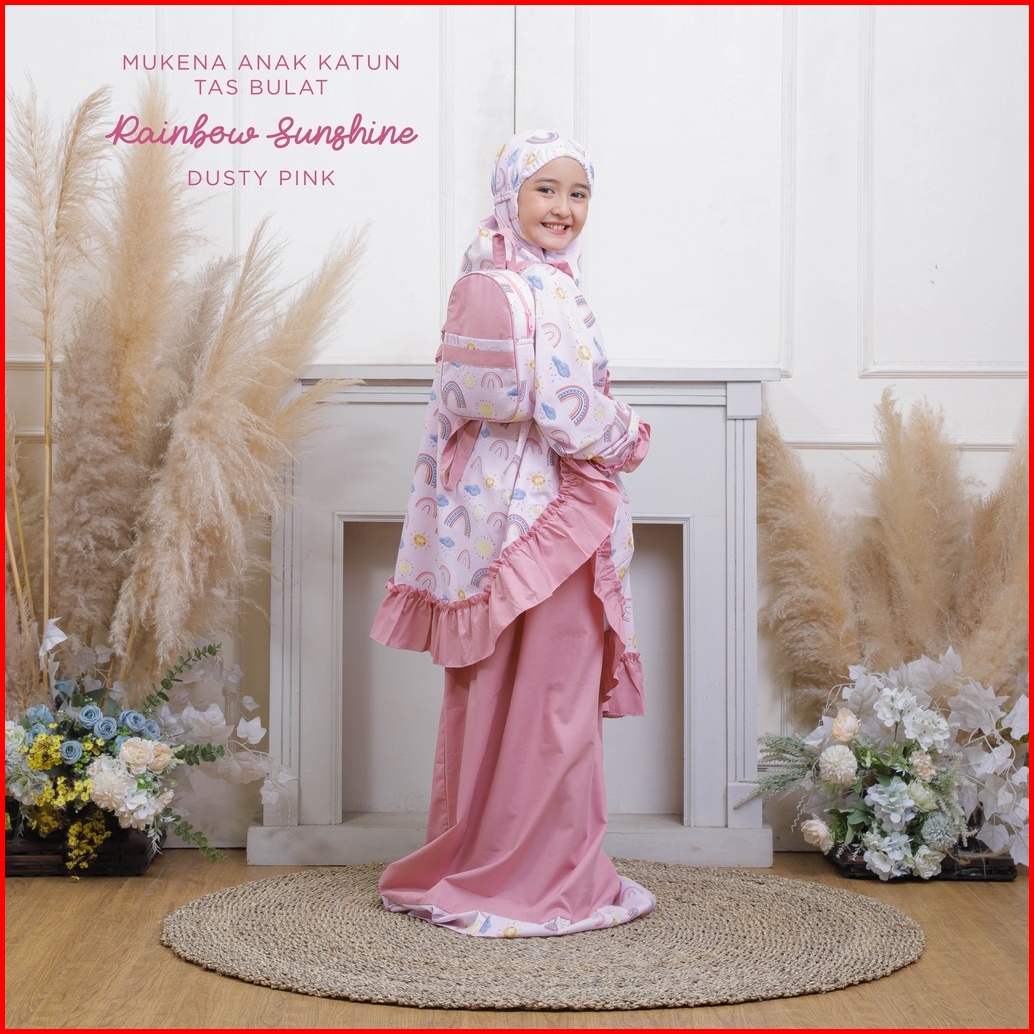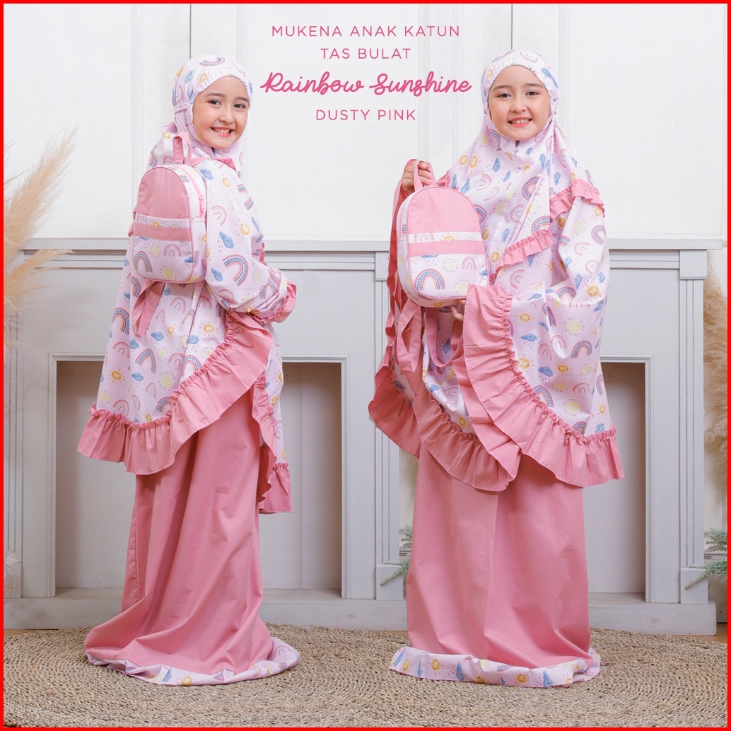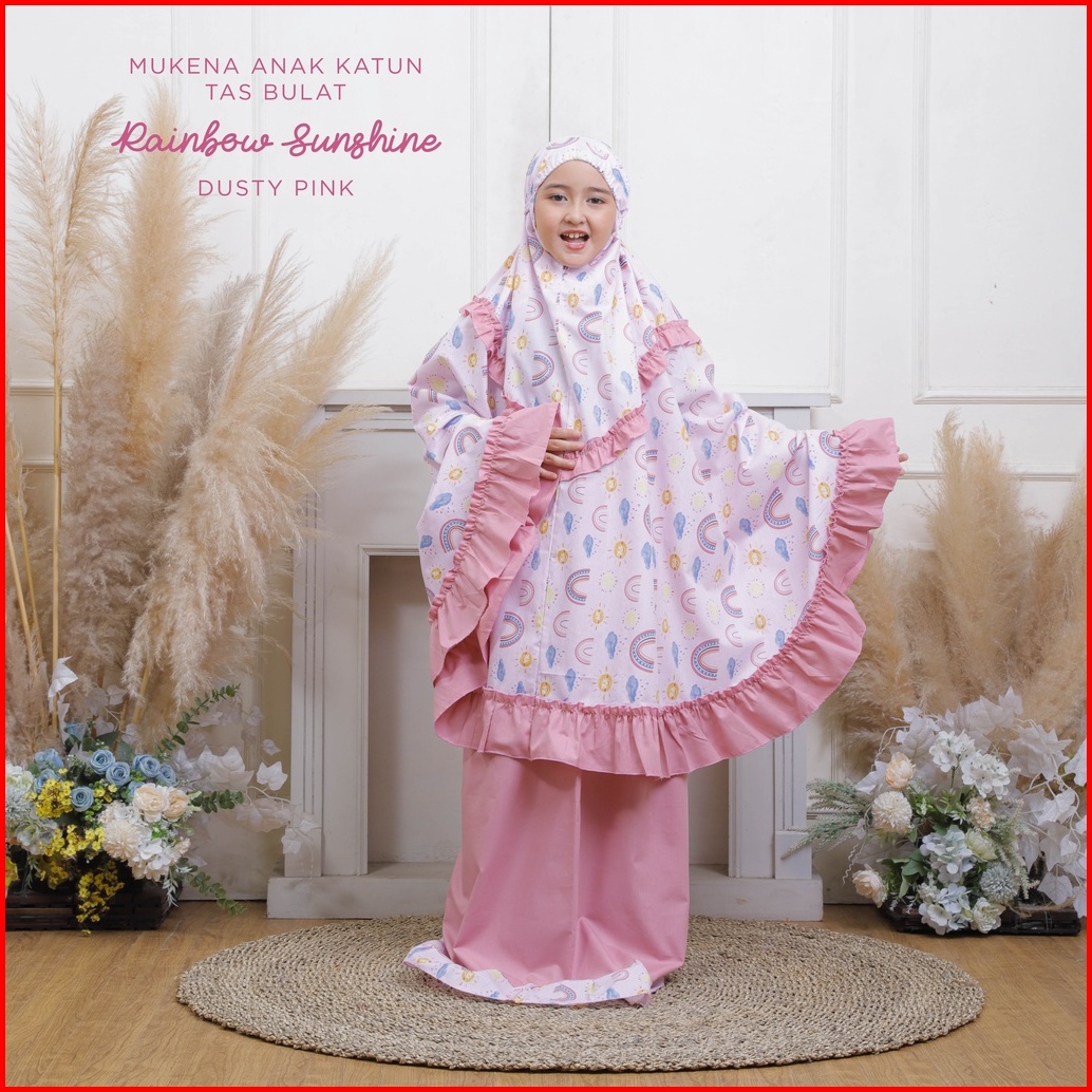 Pusat Mukena Tasik - Mukena Anak Katun Tas Bulat Motif Rainbow Sunshine