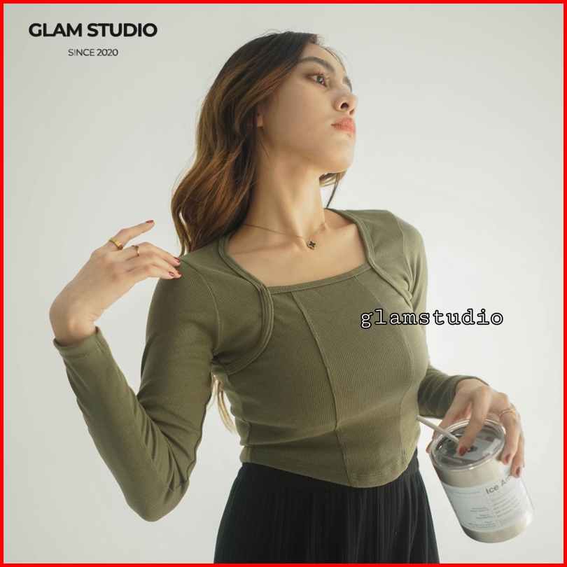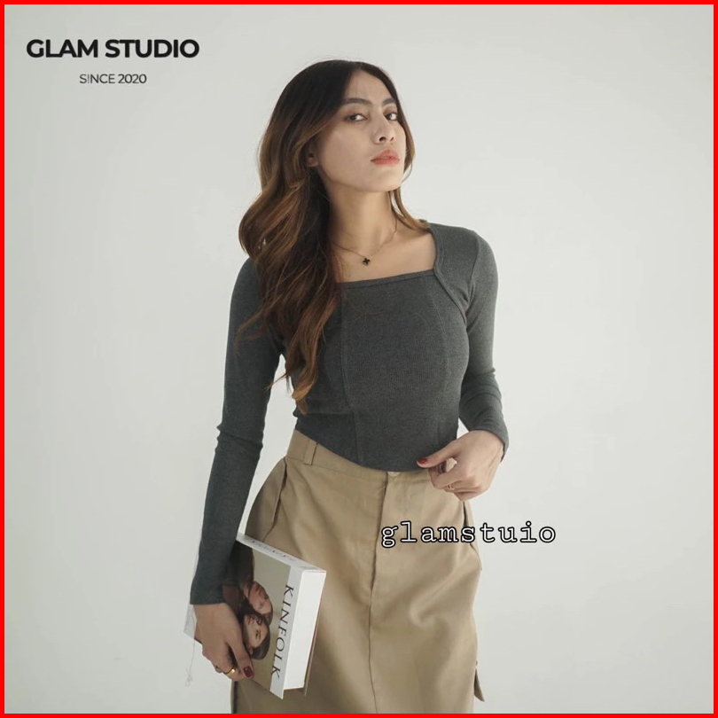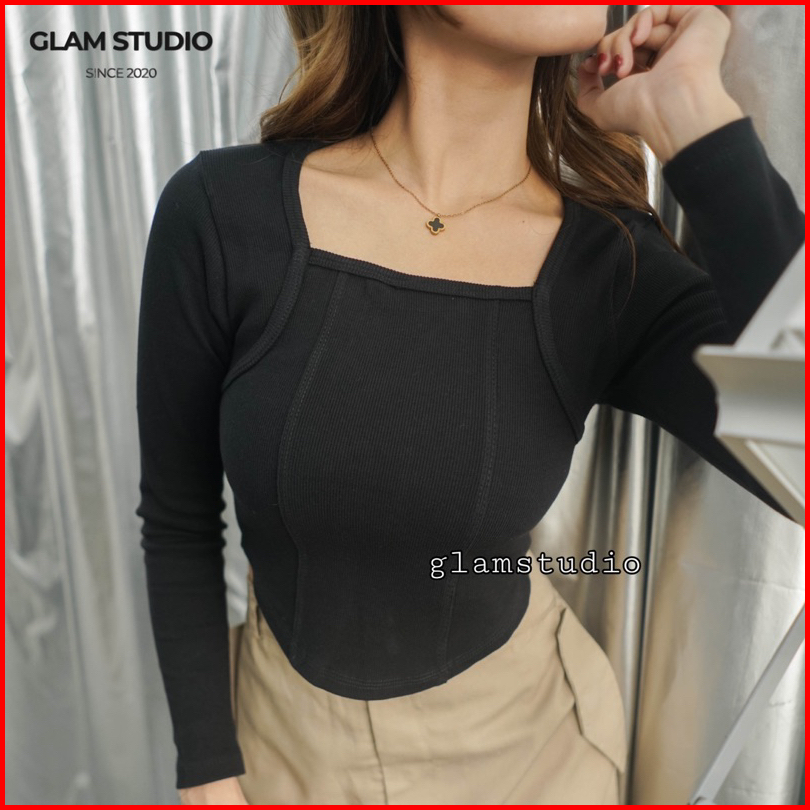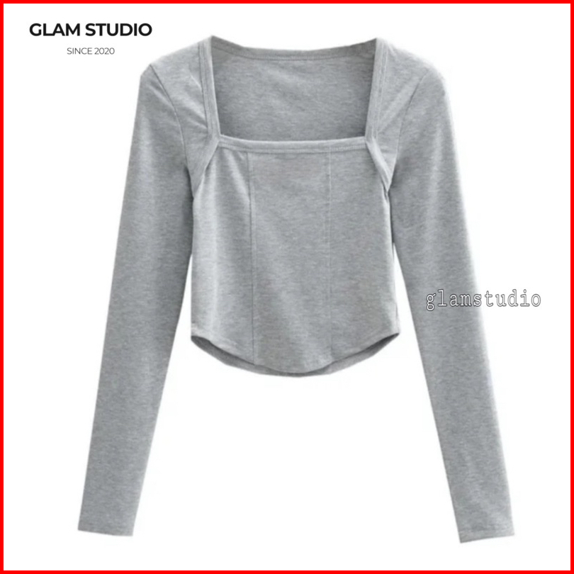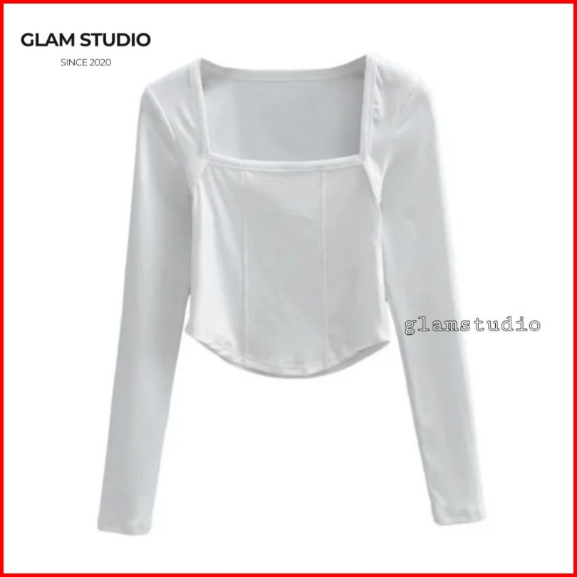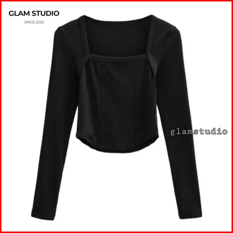 Glamstudio - Crop Top Long Sleeve Korea Kaos Crop Lengan Panjang Ctls 010 S M L Xl Xxl