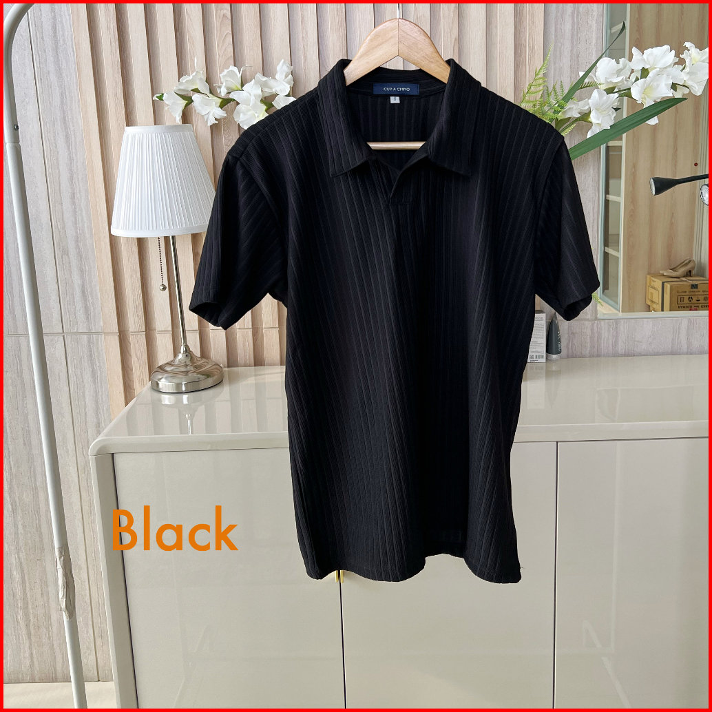 Korean Knit Baju Polo Shirt Pria Salur Besar Dengan Cutting Slim Fit