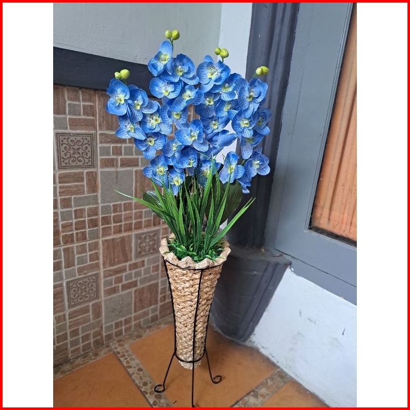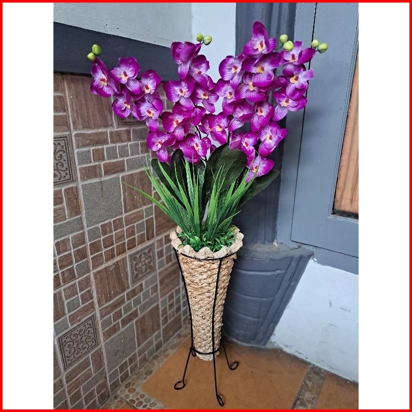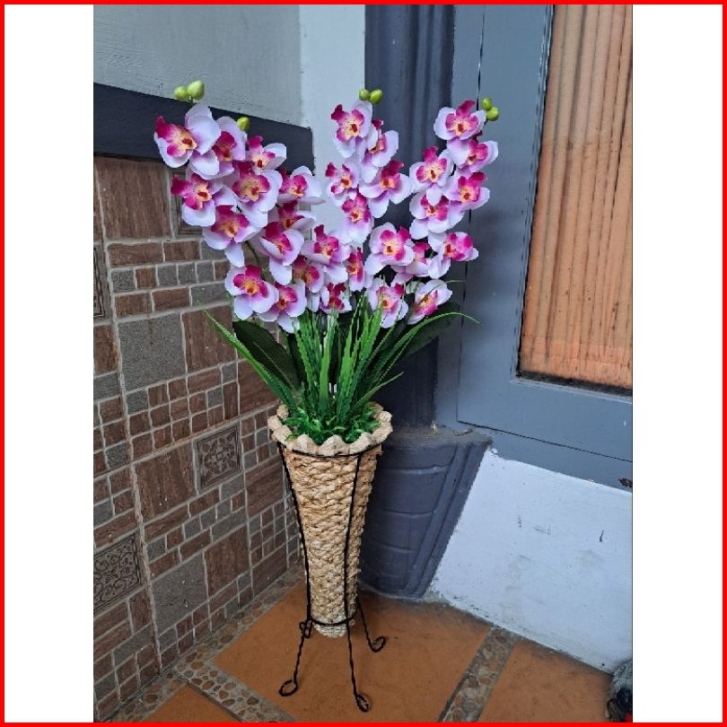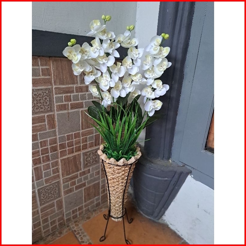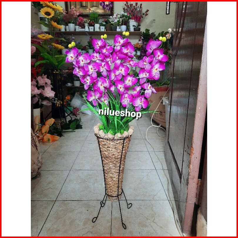 Bunga Anggrek Artificial Pot Pelepah Anyam Standing Home Dekorasi Dekorasi Rumah Bunga Pojok