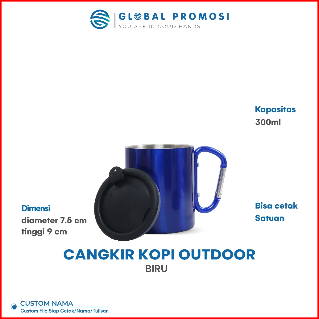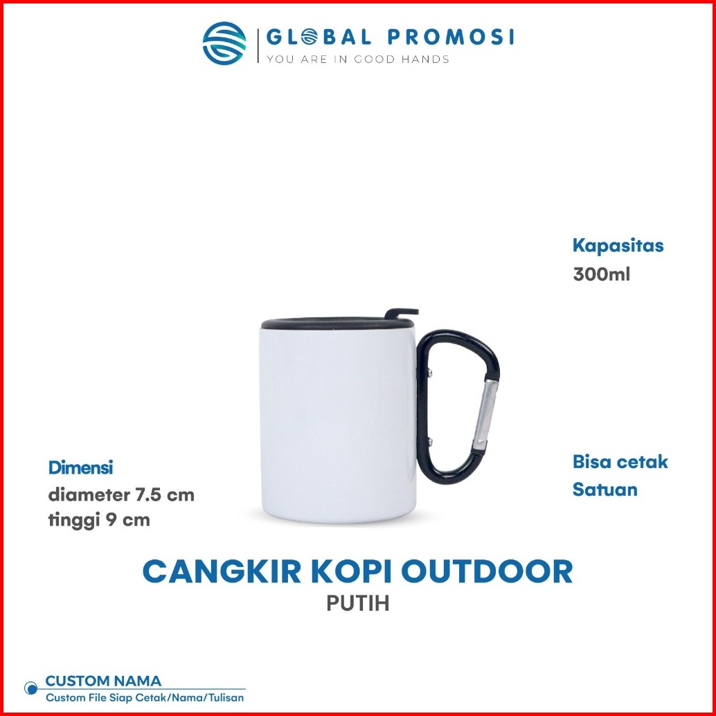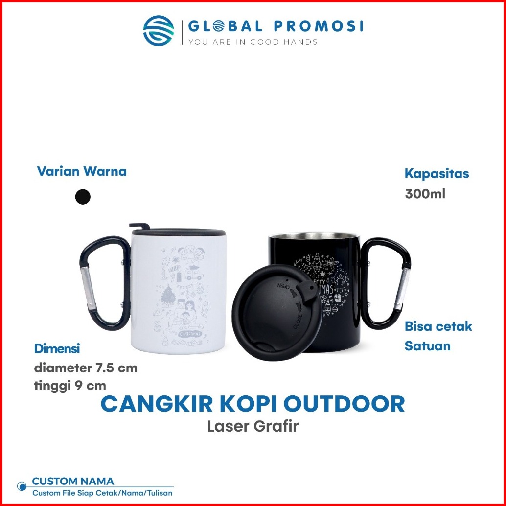 Custom Mug Cangkir Carabiner 280ml Gelas Kopi Stainless Laser Grafir Cetak Nama Logo Desain