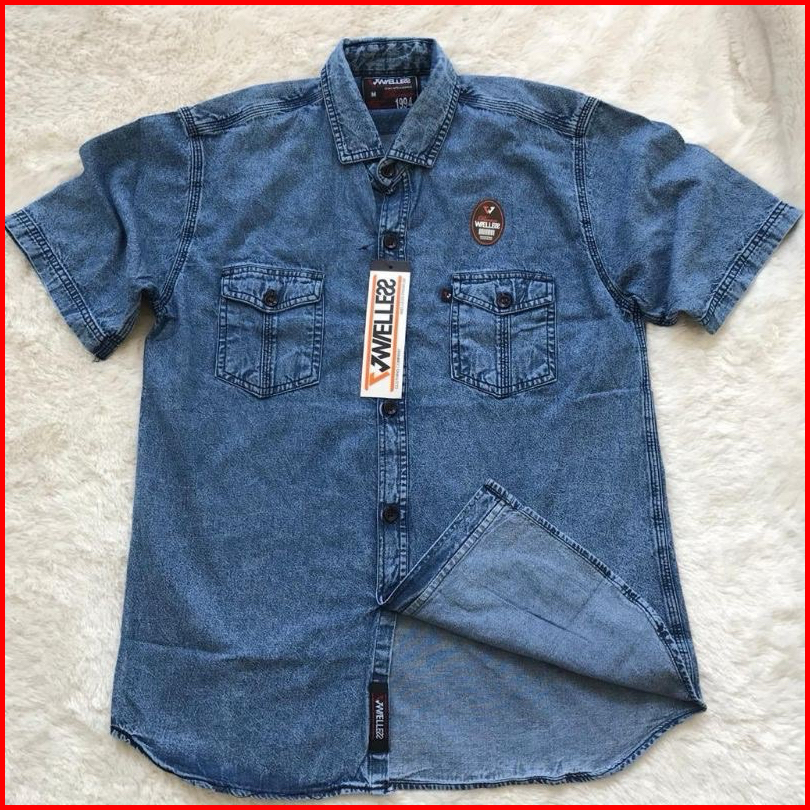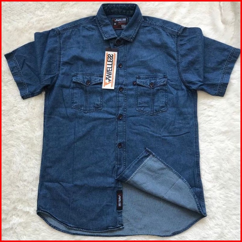 Kemeja Jeans Denim Lengan Pendek Pria Terpopuler