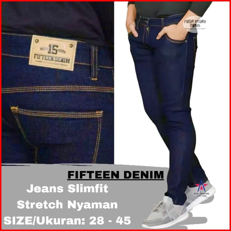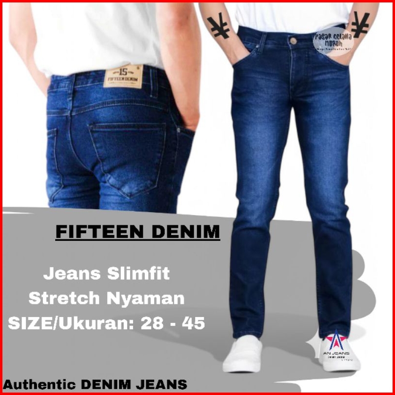 Fifteen Denim - Celana Jeans Pria Slim Fit Streetch Original New Fifteen Denim Celana Pria Jeans